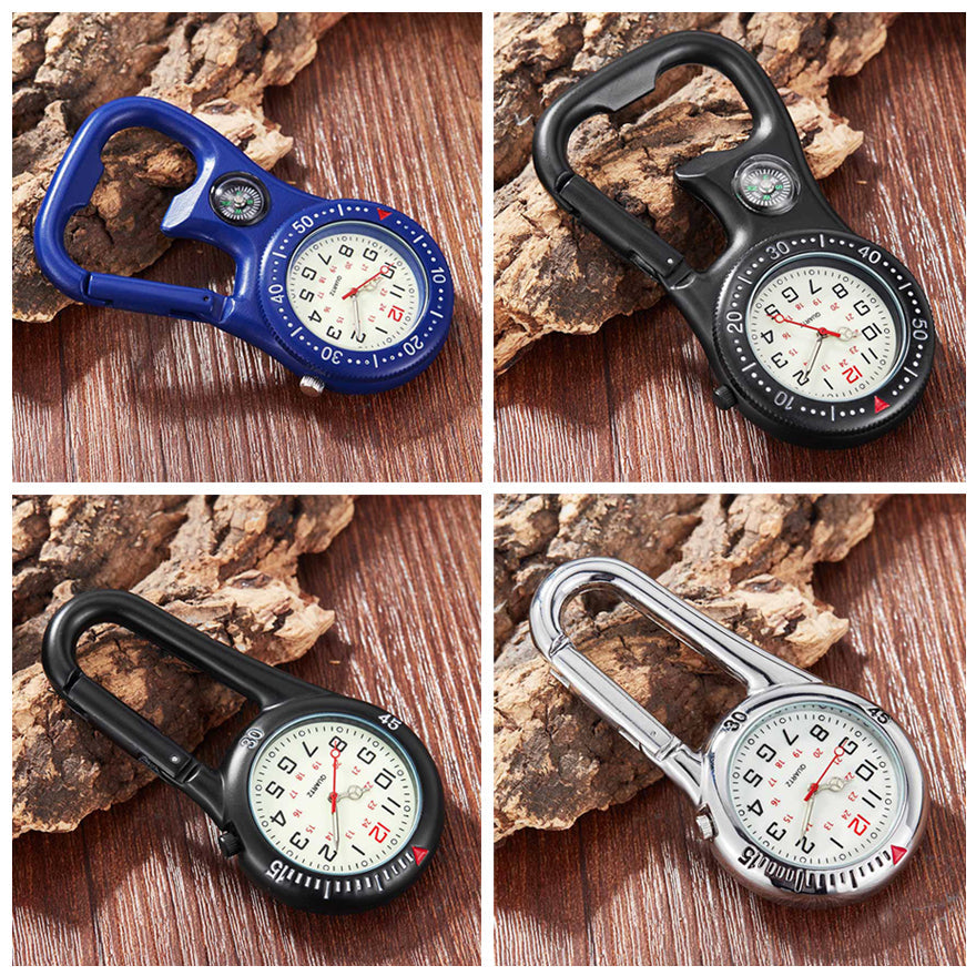 Unisex Compass Bottle Opener Clip-on Carabiner Outdoor Sports Pocket Watch