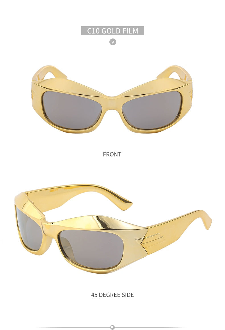 Unisex Cyberpunk Sports Luxury Gold Sliver UV400 Square Sunglasses Eyewear