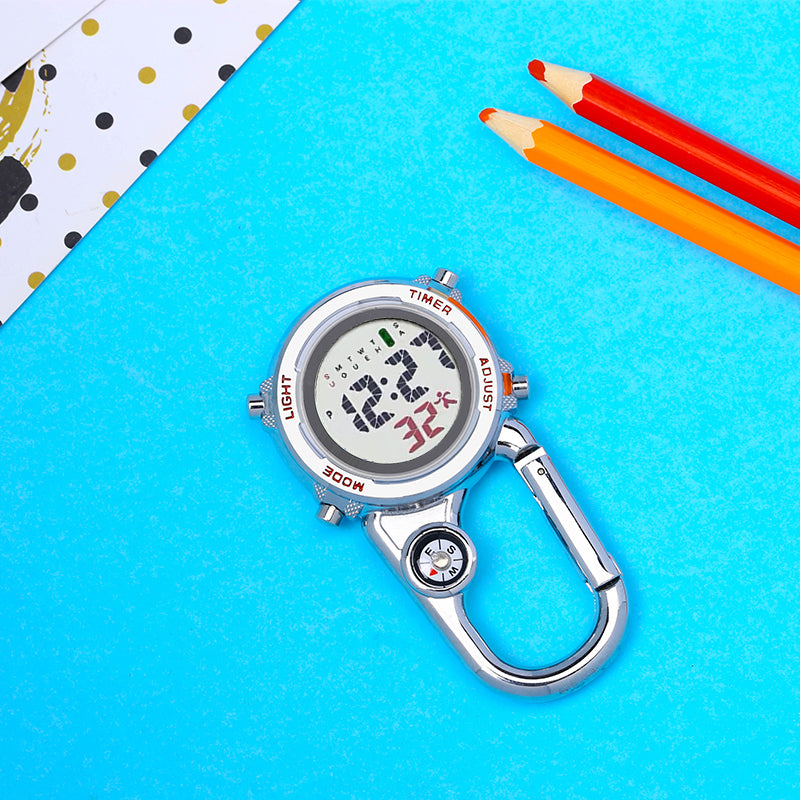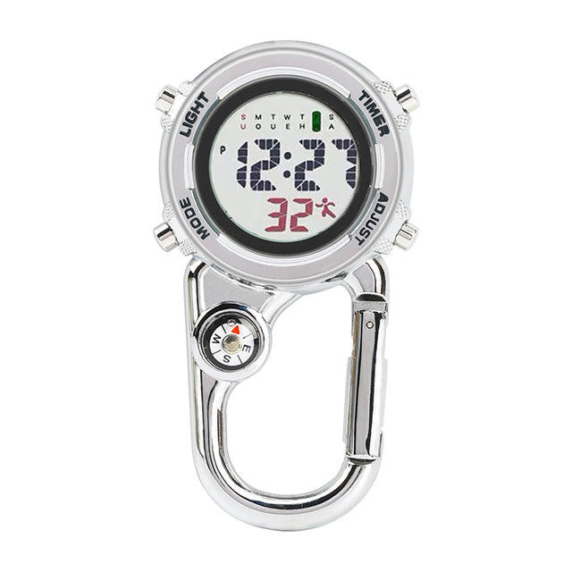 Unisex Digital Climbing Compass Clip-on Carabiner Backpack Pocket Watch