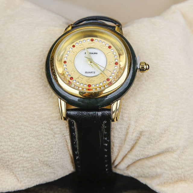 Unisex Fashion Natural Jade Stone Quartz Movement Waterproof Watch