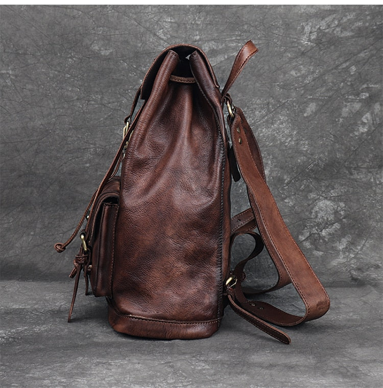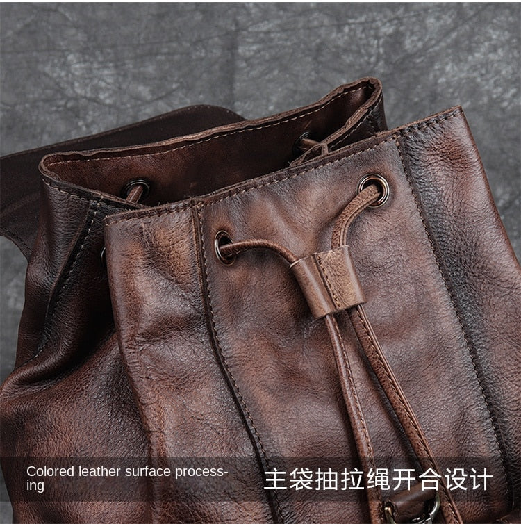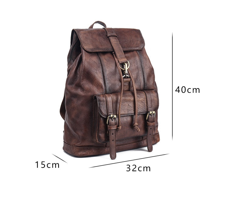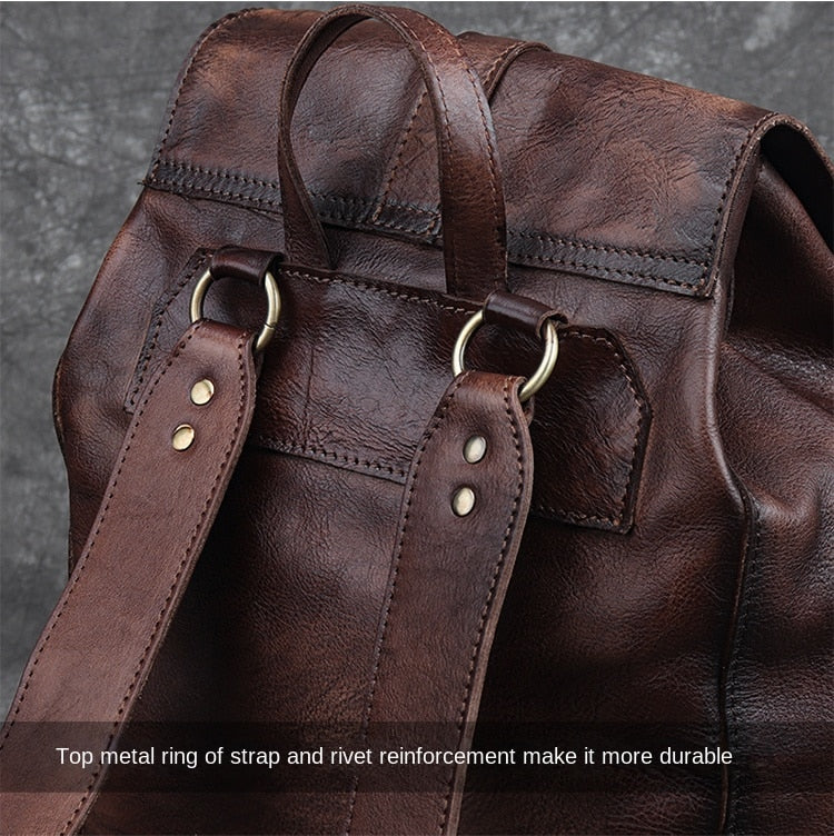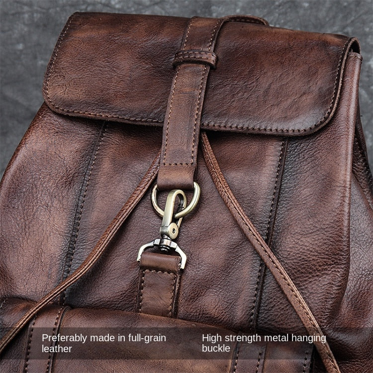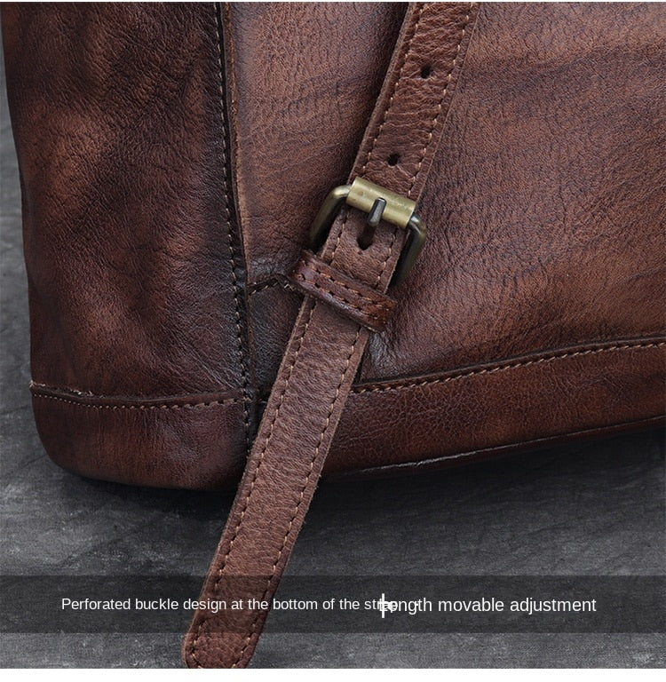 Unisex First Layer Cowhide Leather Retro Large Capacity Laptop Bag