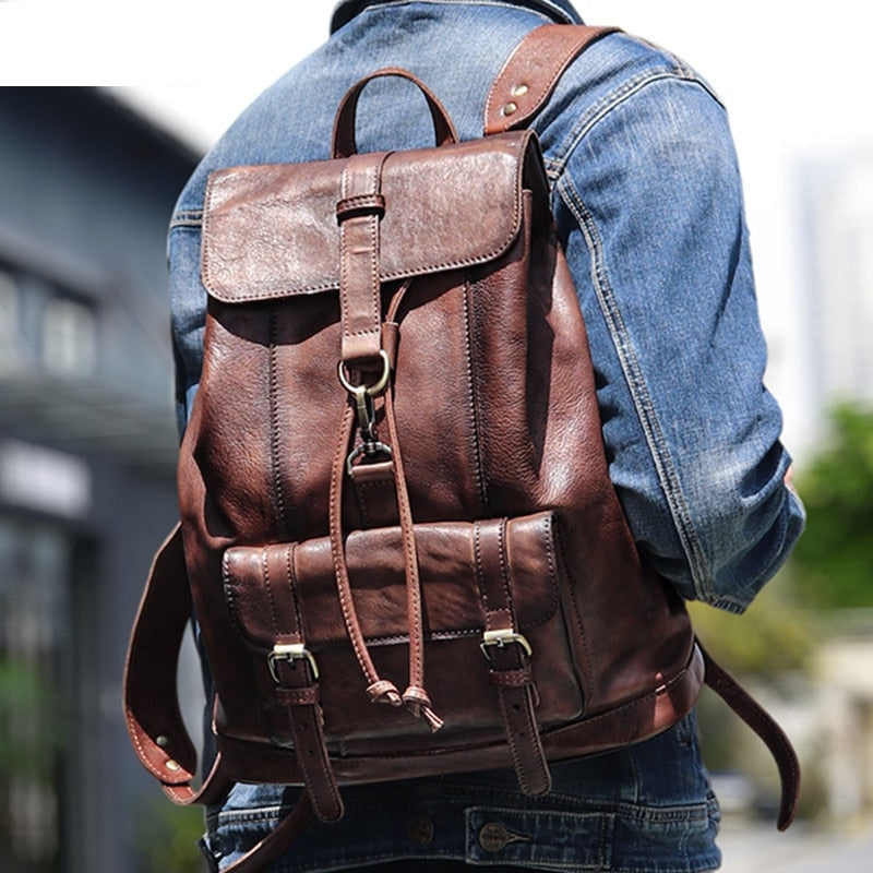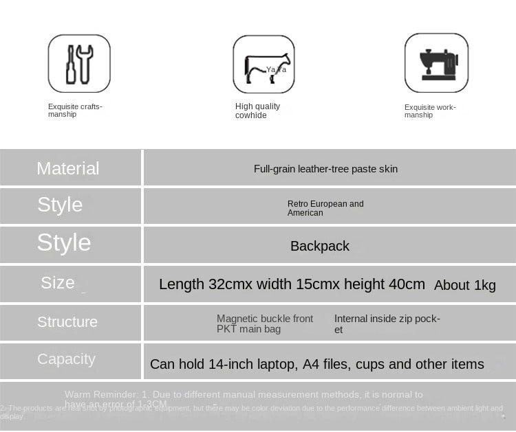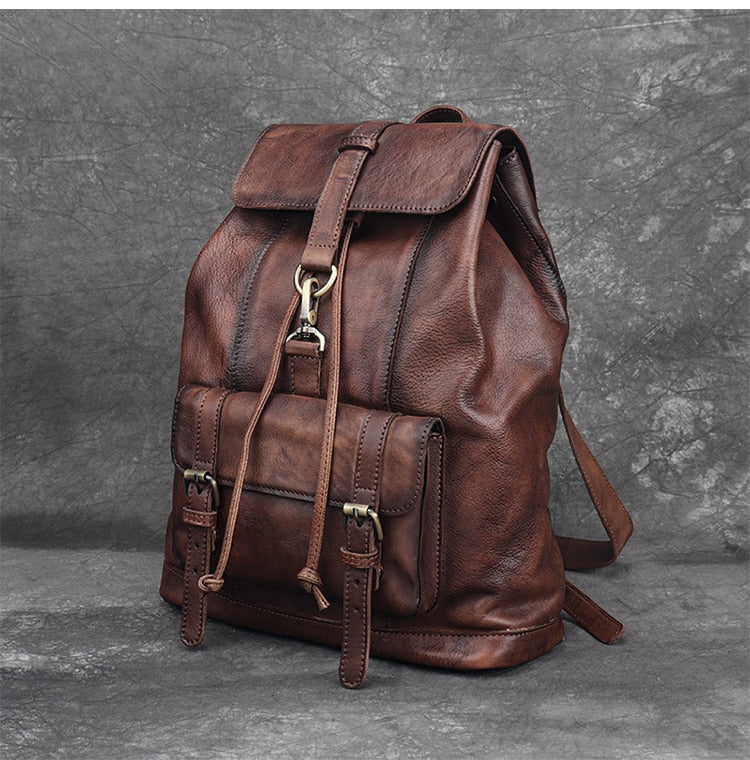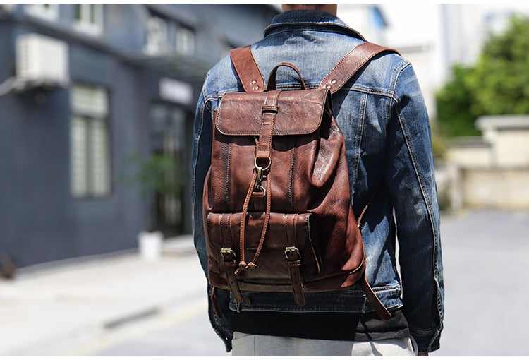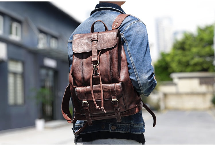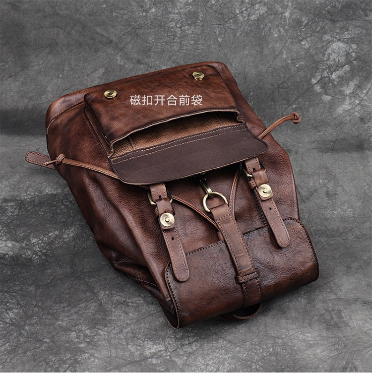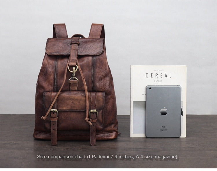 Unisex First Layer Cowhide Leather Retro Large Capacity Laptop Bag