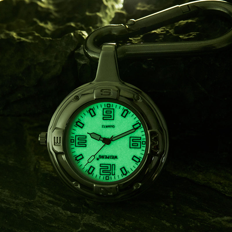 Unisex Hook Clip Quartz Luminous Hands Carabiner Climbers Pocket Watch