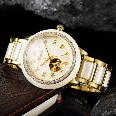 Unisex Luxury Natural Jade Hollow Automatic Mechanical Clock Watch
