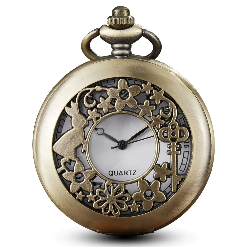 This unisex antique analog pocket watch features quartz movement to provide precise timekeeping. This pocket watch with its cool retro-inspired finish will definitely catch everyone's attention. This timepiece is made of stainless steel in a round shape with floral and rabbit pattern hollow outs. Don't wait. Just go ahead and order.