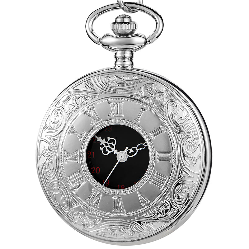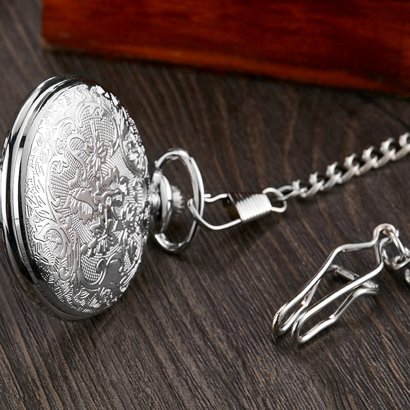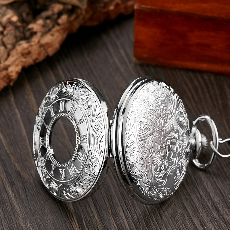 Unisex Retro Steampunk Silver Roman Numeral Quartz Pocket Watch