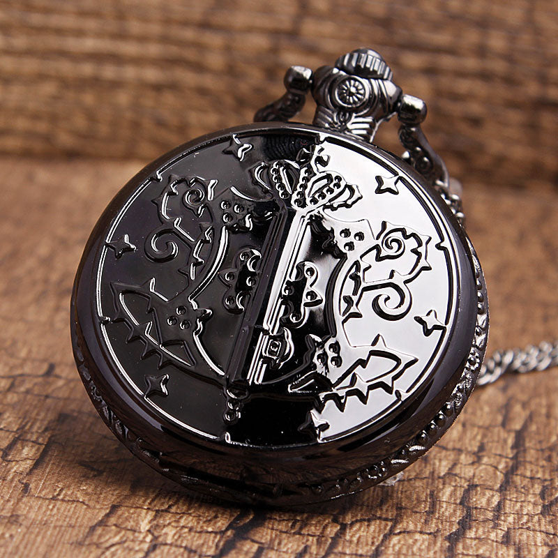 Unisex Shining Smooth Full Metal Alchemist Pendant Chian Quartz Pocket Watch