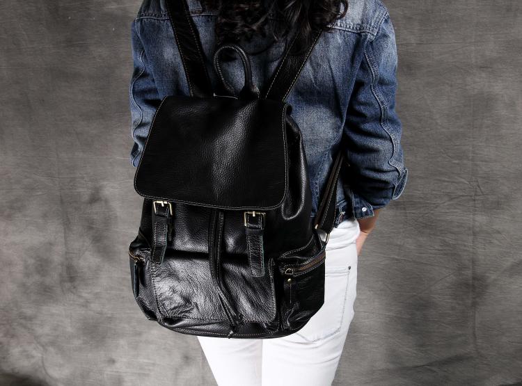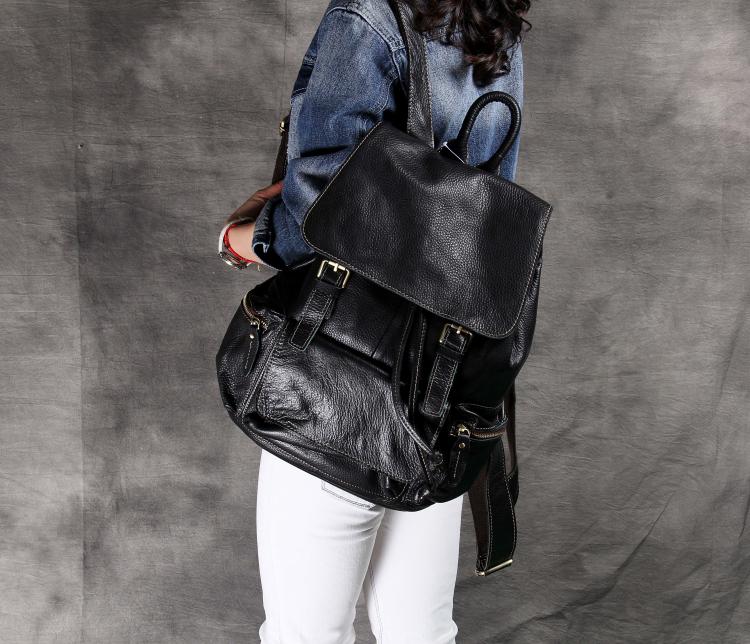 Unisex Soft Genuine Leather European Style Laptop Shoulder Bag Backpacks
