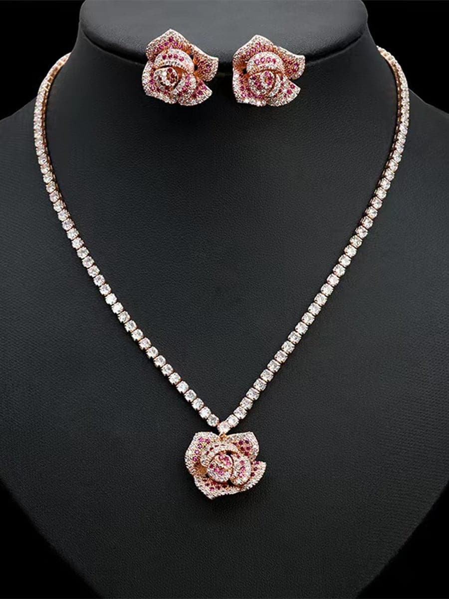 Vintage Floral Zircon Necklace and Earrings Set MSN110818