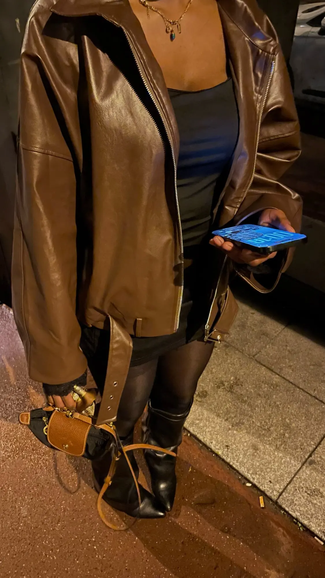 With its retro charm and contemporary street-style appeal, this leather bomber coat is a standout outerwear piece for confident, fashion-forward wardrobes.