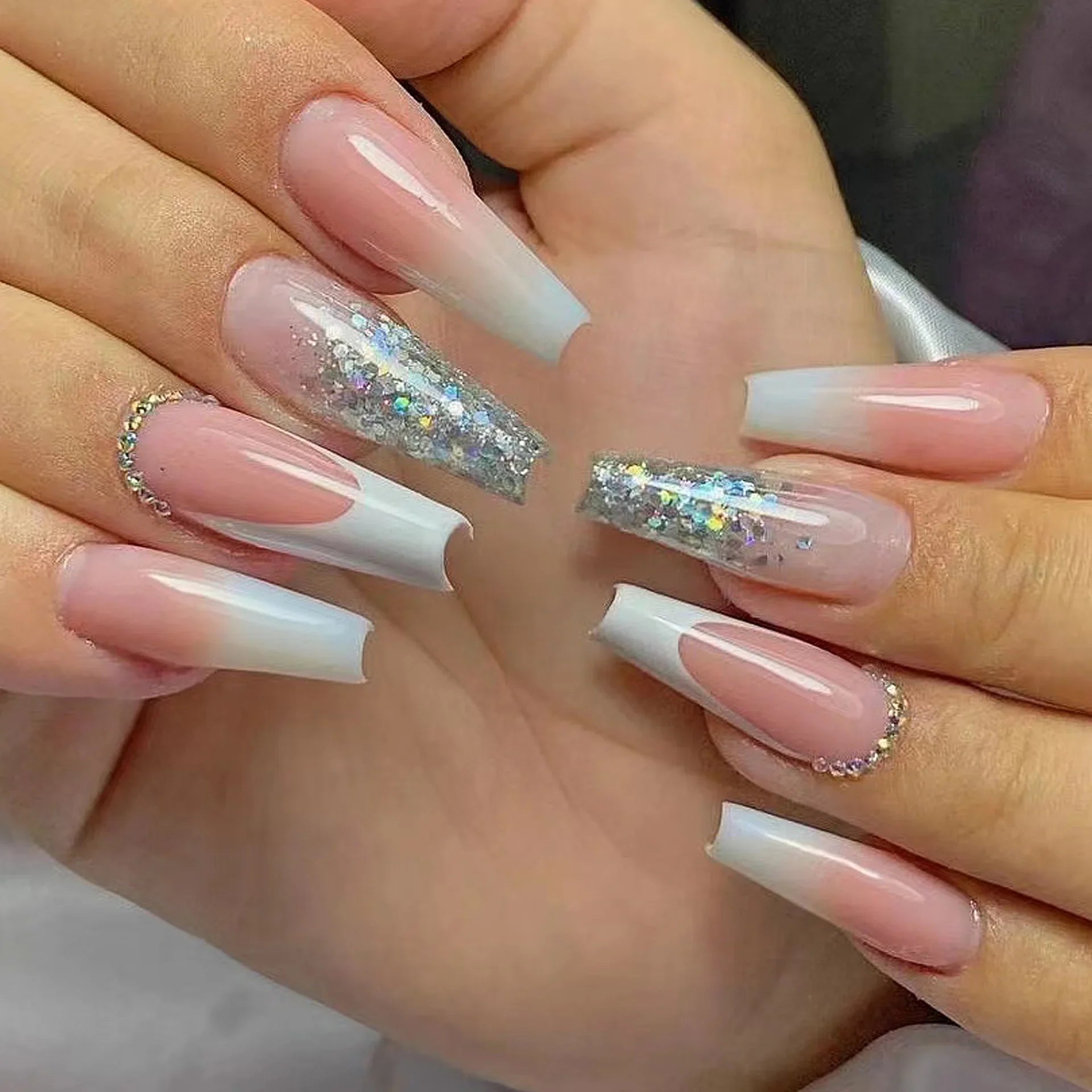 wearable full cover long ballet French coffin white False Nails with glue matte red black pink white artificial nails press on