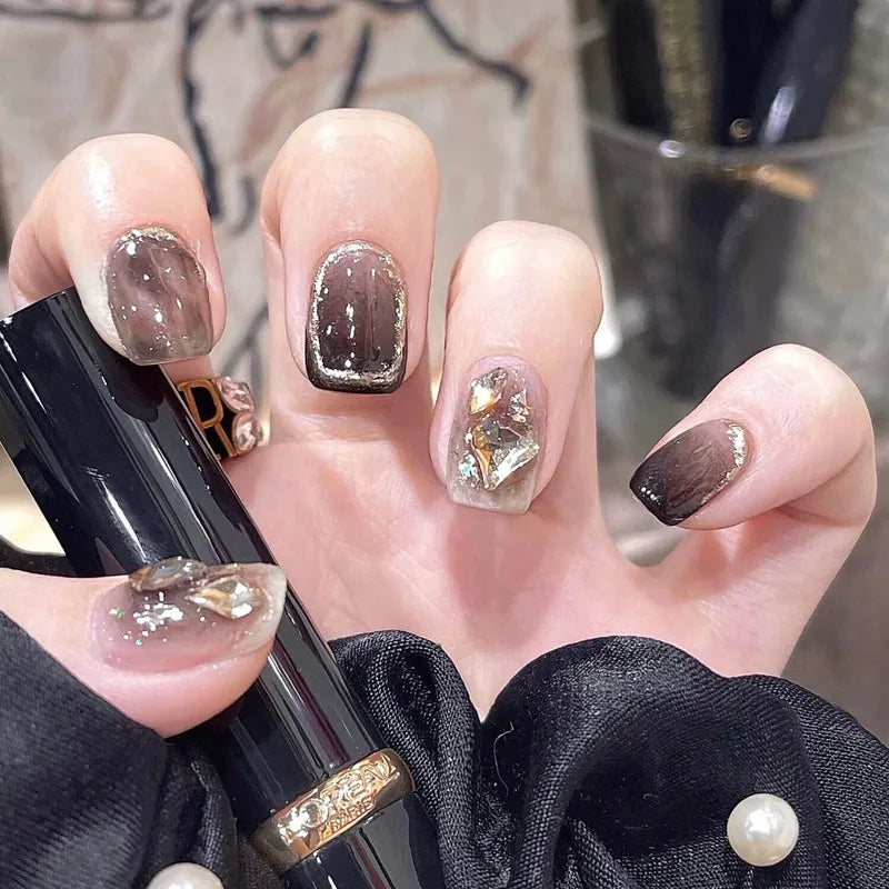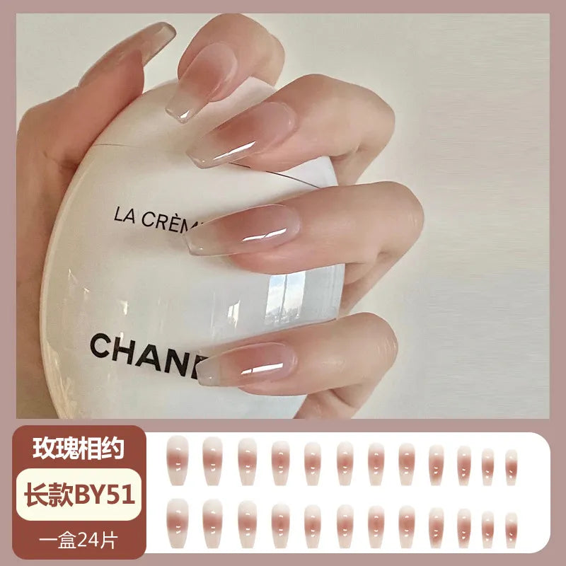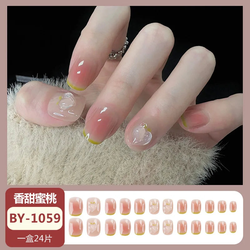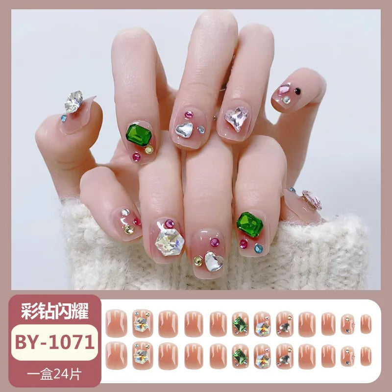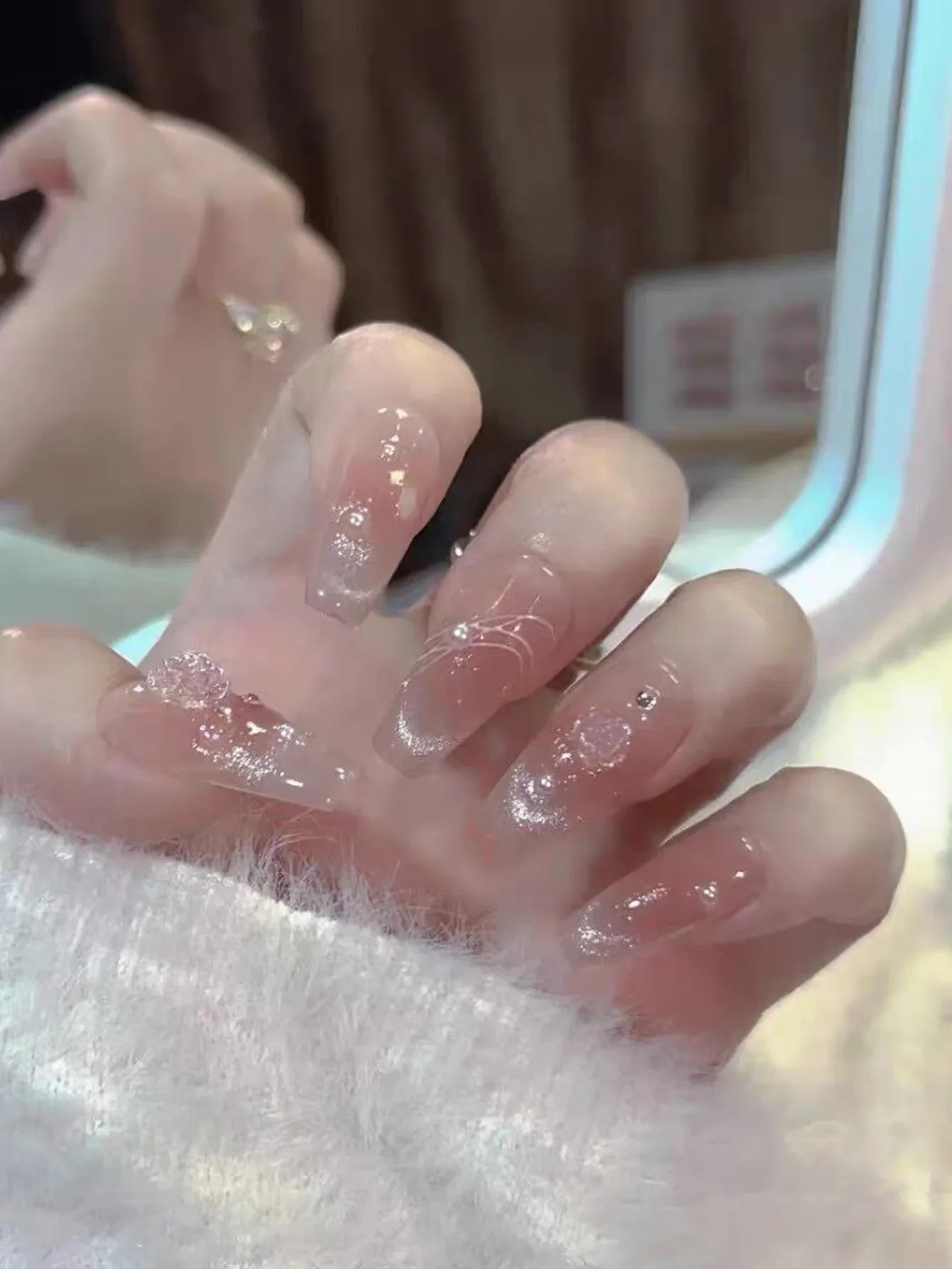 Wearable Silver Stripes Y2k False Nails Long Almond Round Fashion Nail Tips Press On With Silver Beads Designs Fake Nails Art