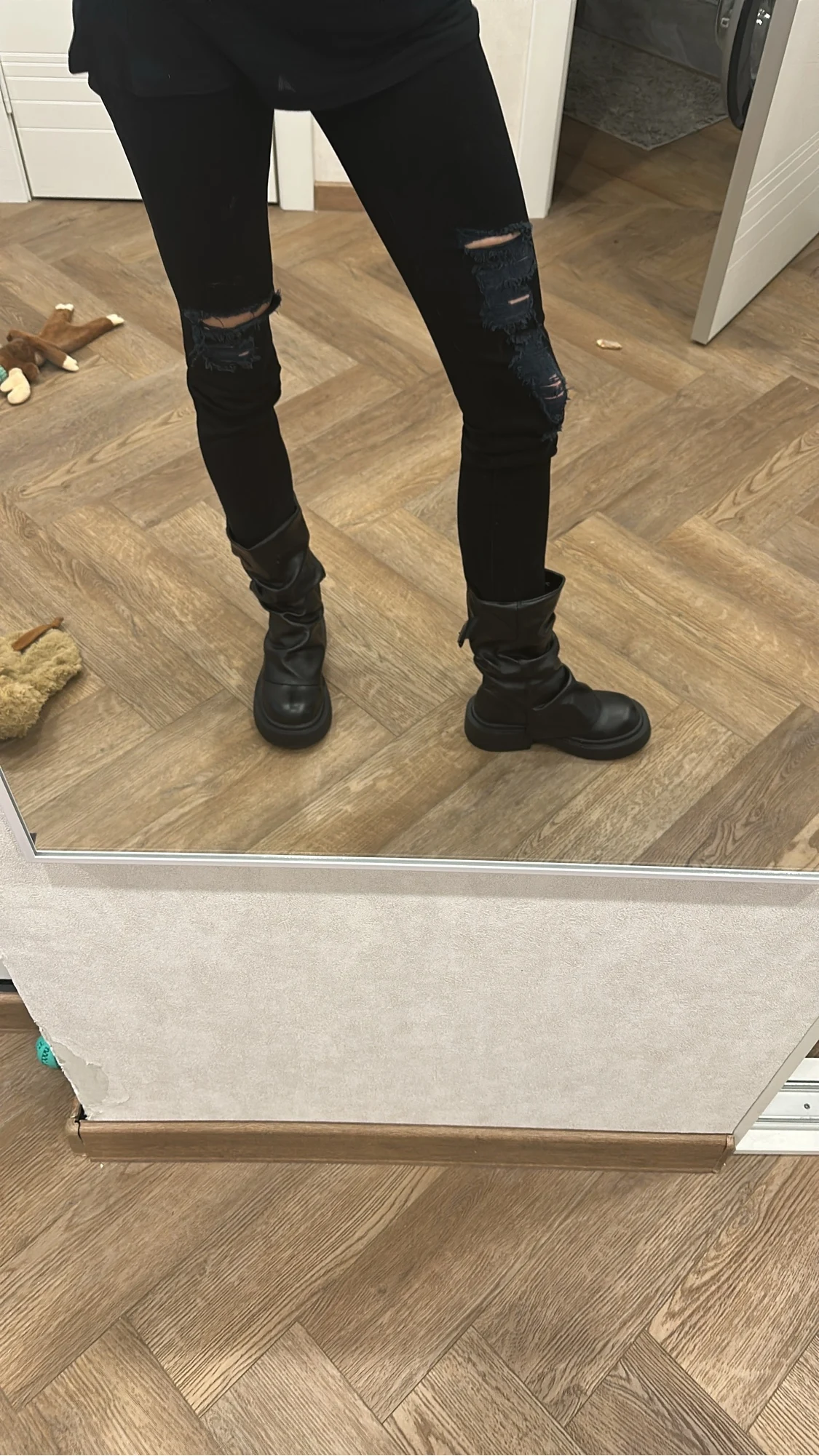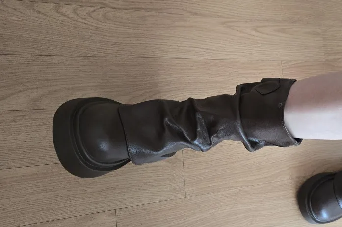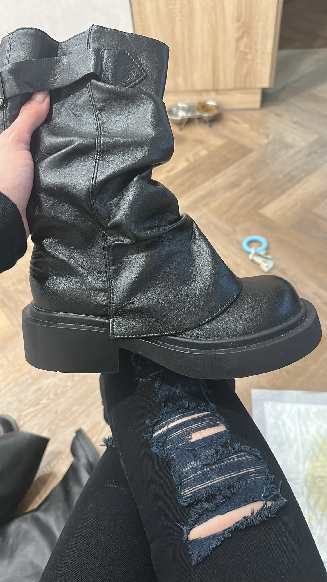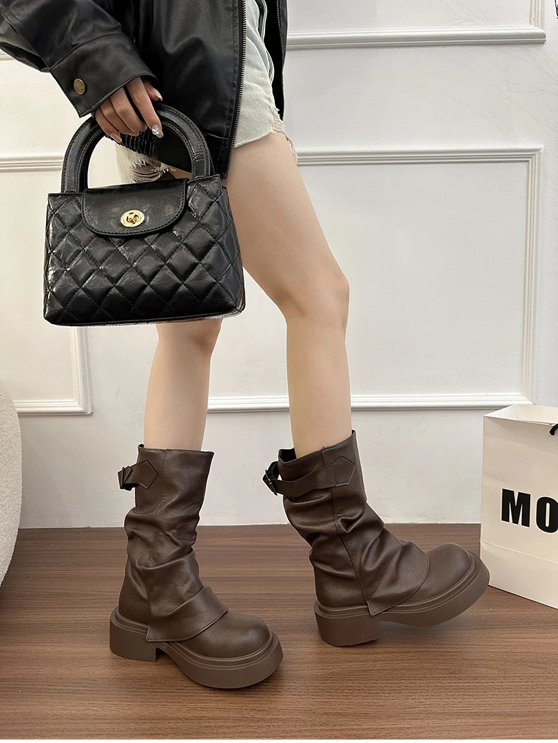 Western Cowboy Booties Thick Heel Pleated Slip-On Designer Trendy Streetwear Women