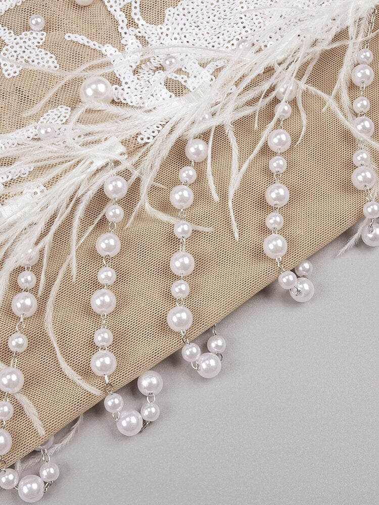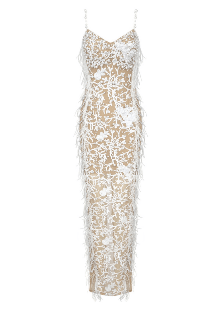 This White Beaded and Feathers Maxi Dress is perfect for those extra special occasions! Featuring a sleeveless design with pearl detailing and feathers on the sides for extra detail. The back slit is specifically added for comfort. Style with statement earrings and heels for an ultra glam look!