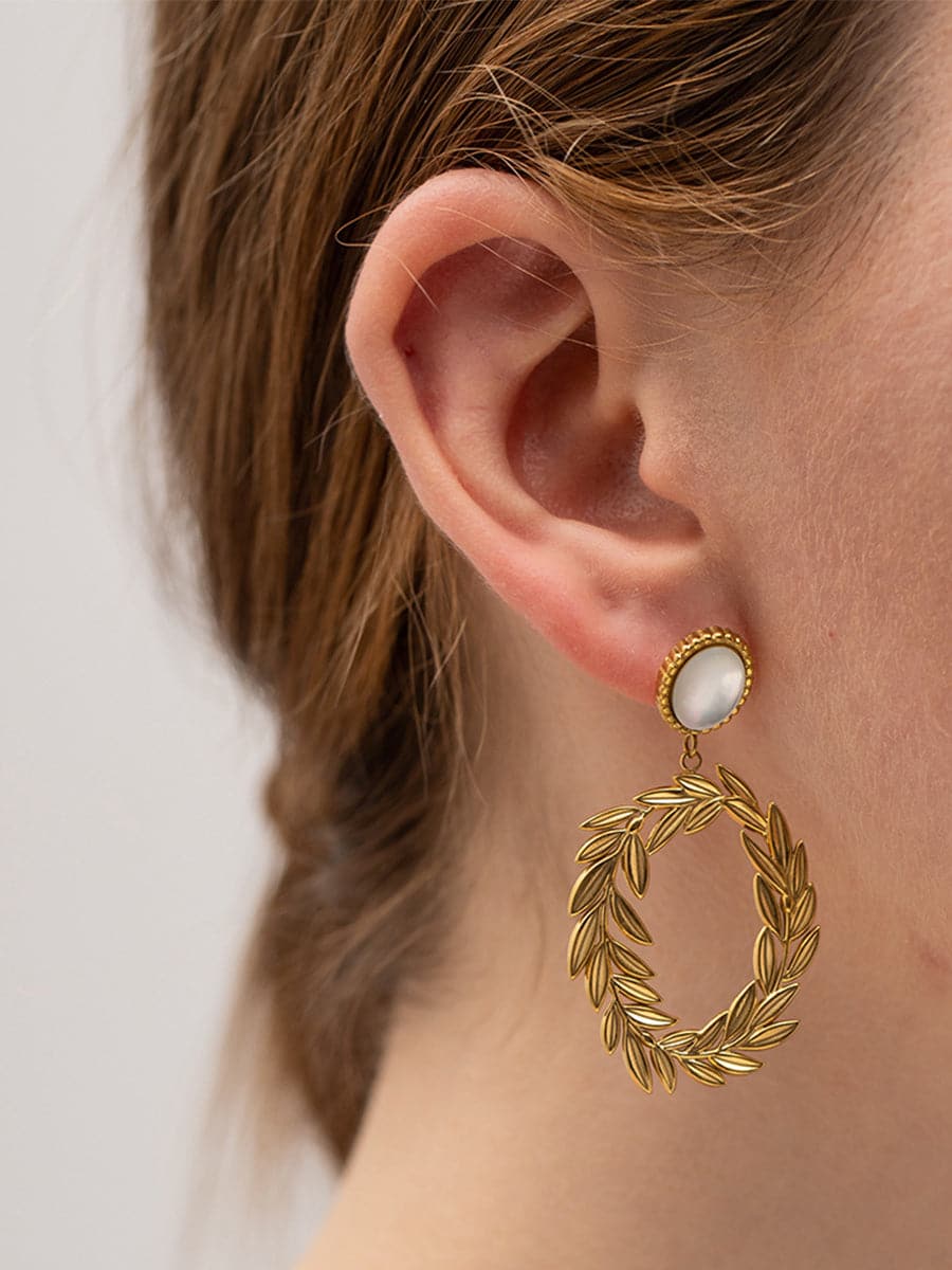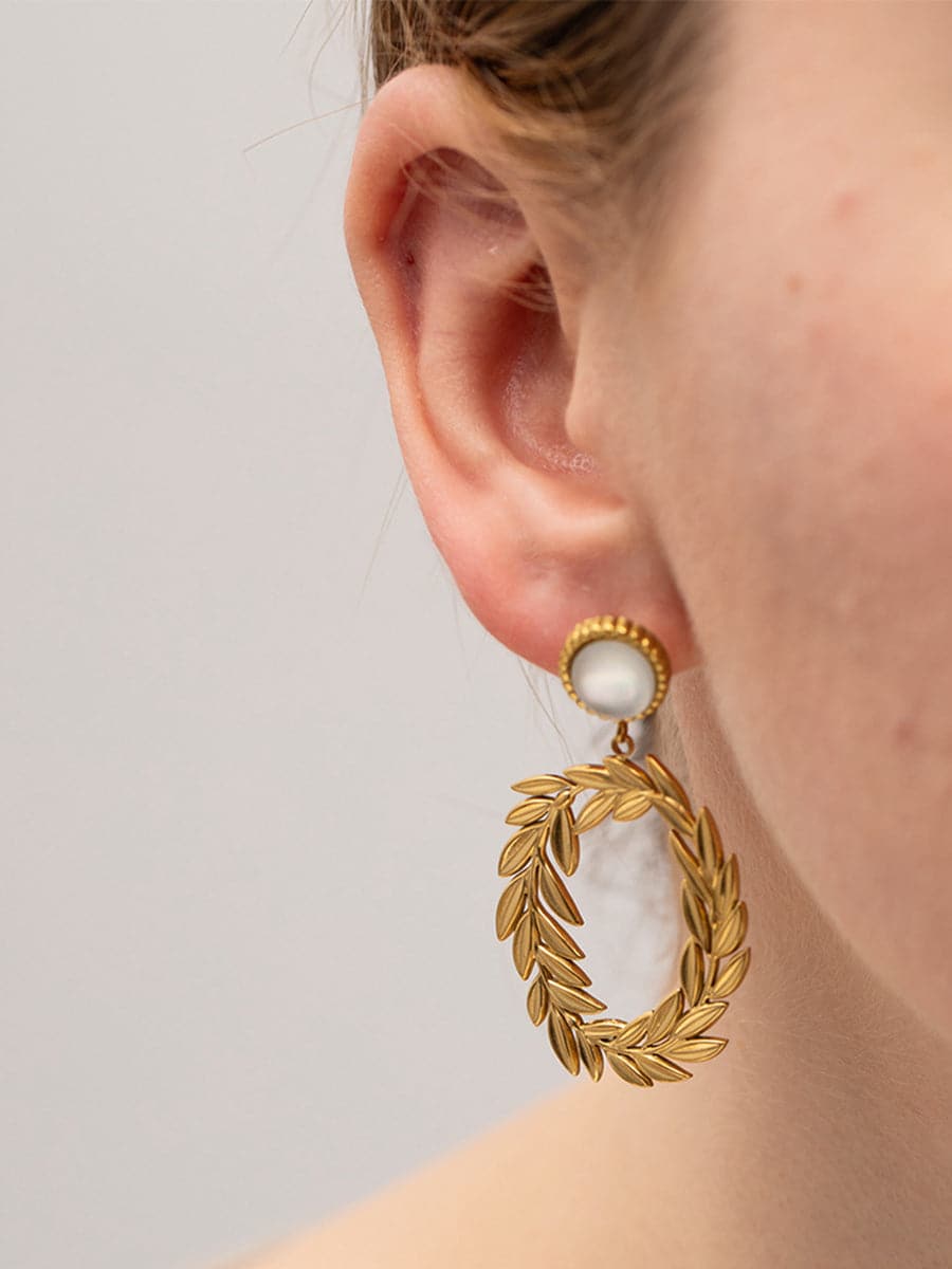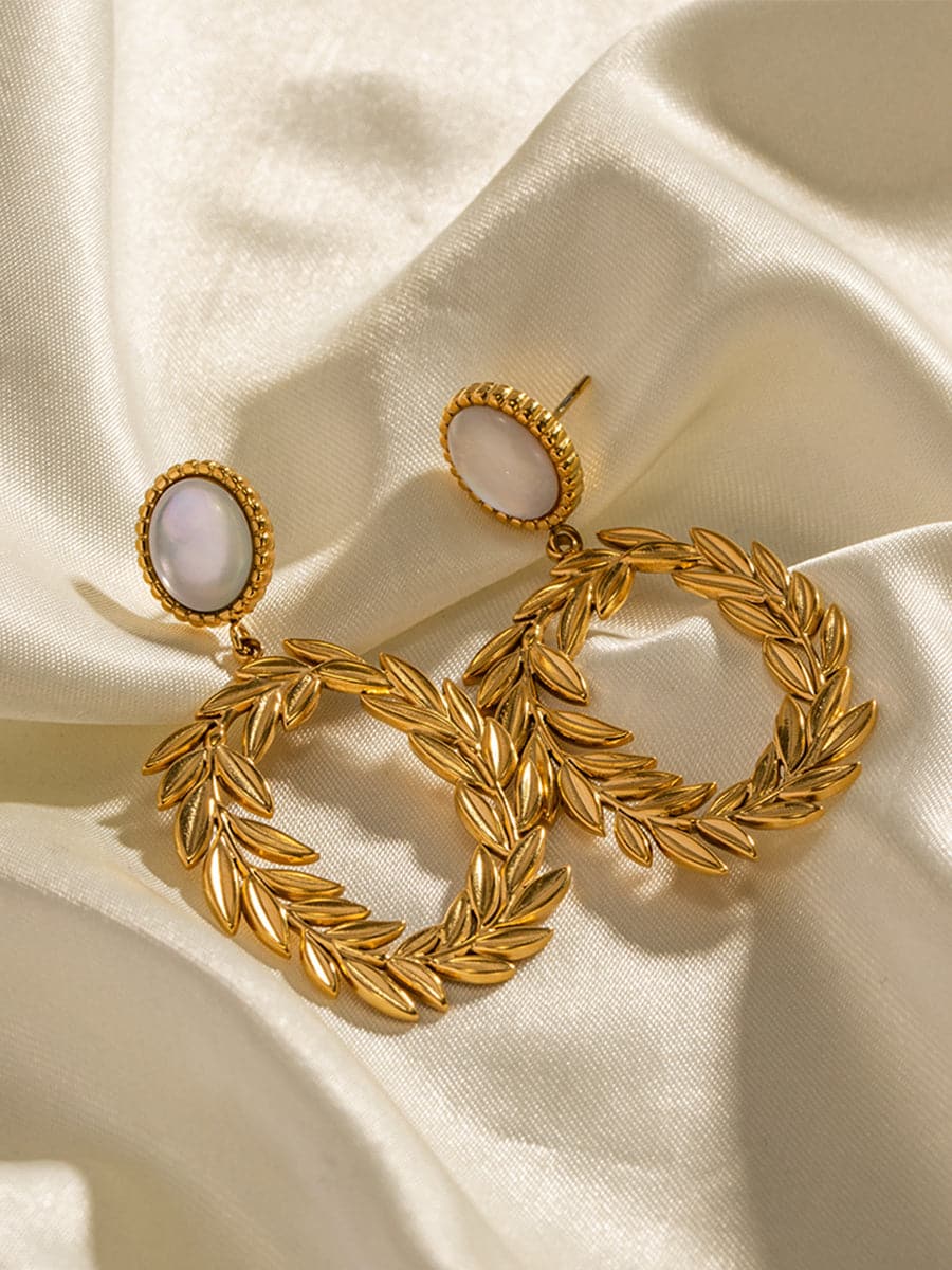 These White Opal Olive Branch Earrings are the perfect way to express class and elegance. These earrings feature classic olive branch design, handcrafted with white opals for a timeless and glamorous look. Capture the beauty and grace of nature with these stunning earrings.