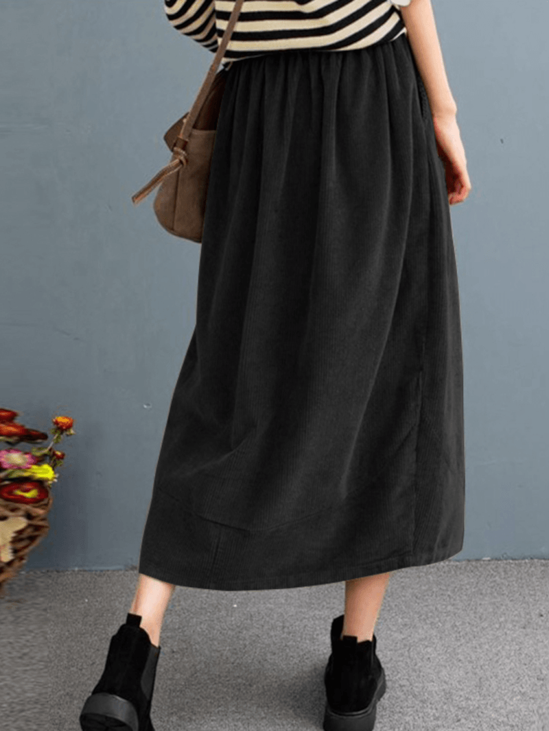 Women Corduroy Solid Elastic Waist Leisure Skirt with Side Pockets