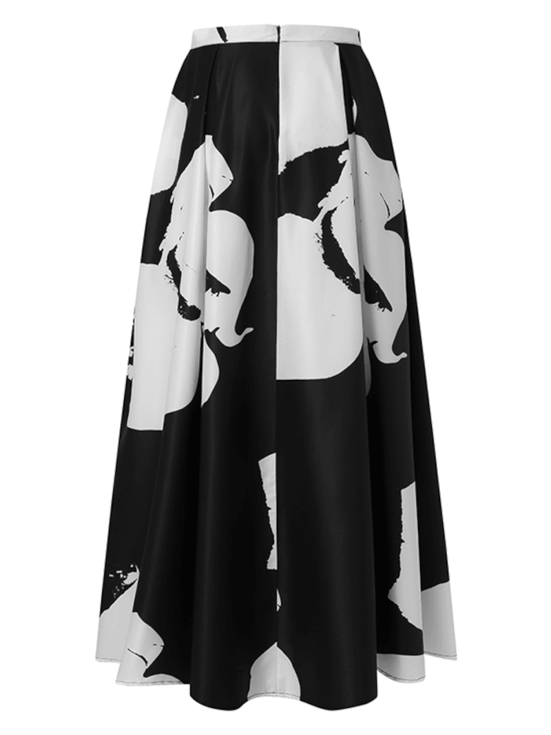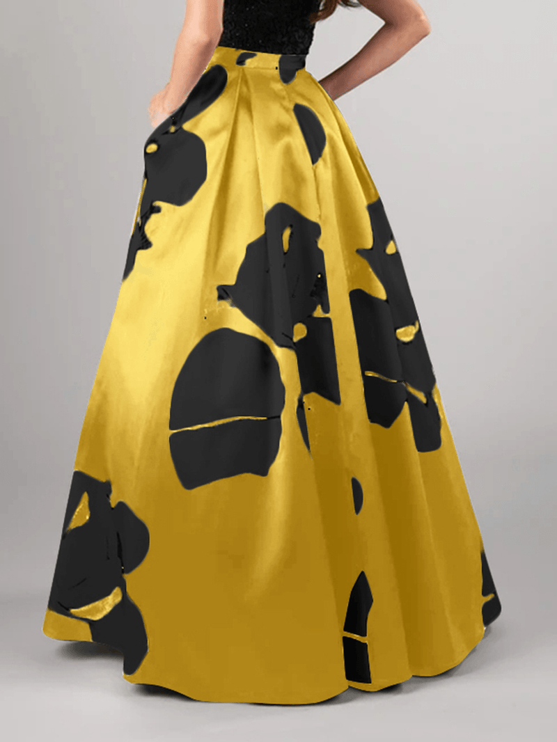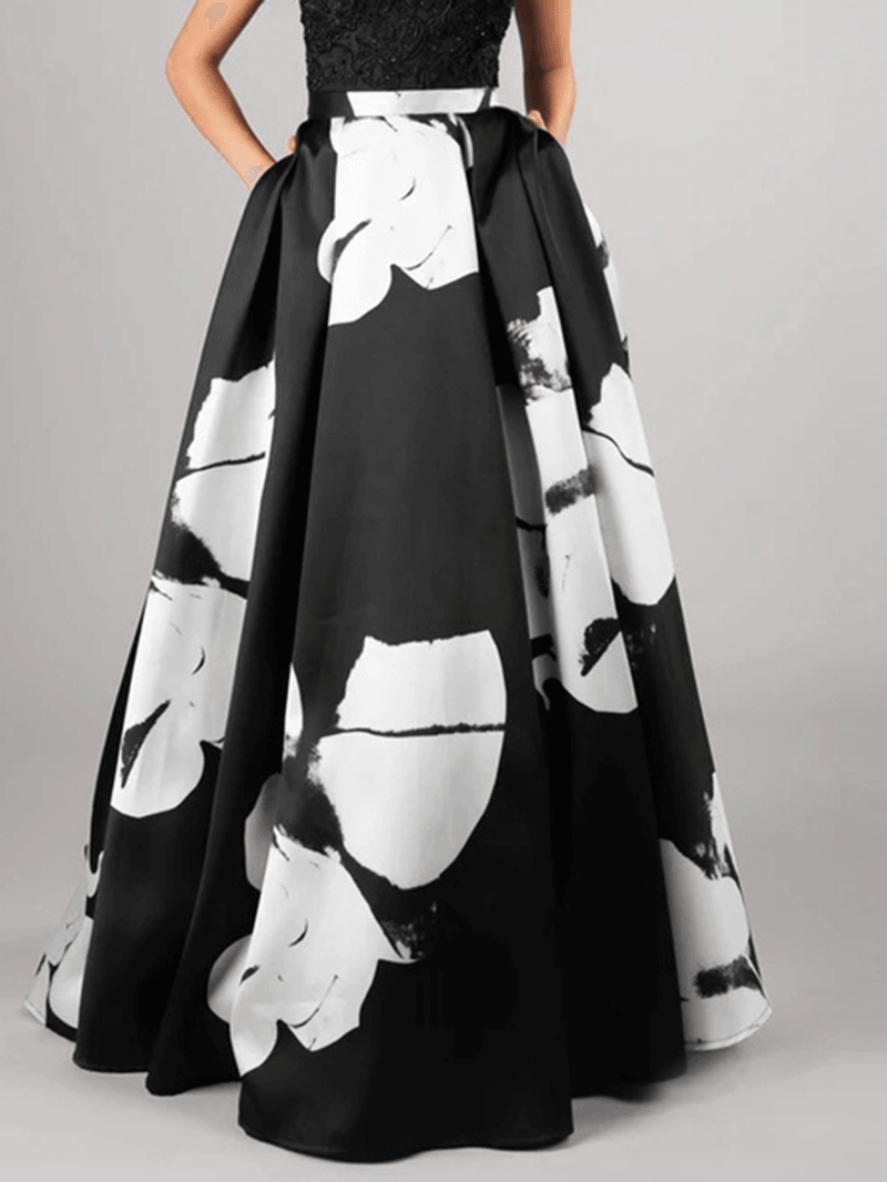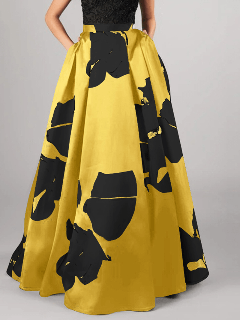 Women Large Flower Print A-Line Swing Casual High Waist Skirts with Pocket