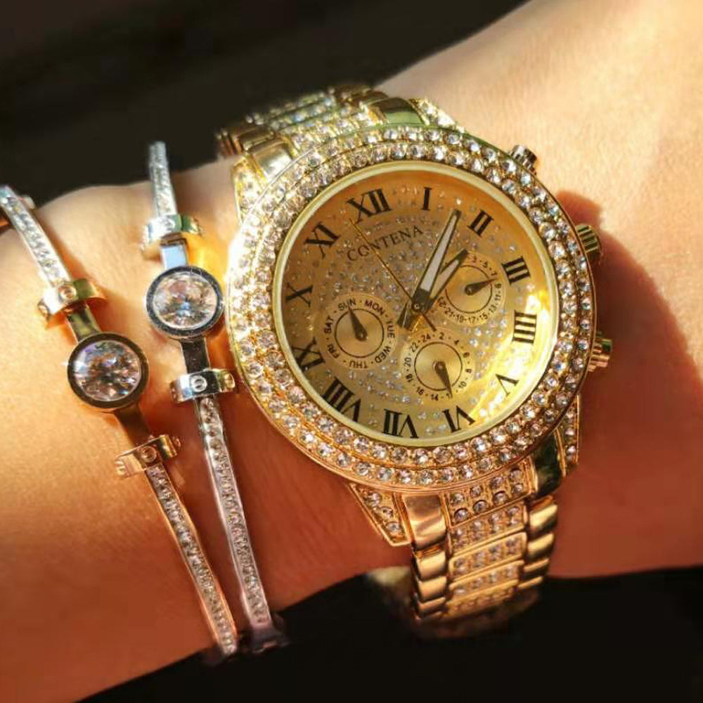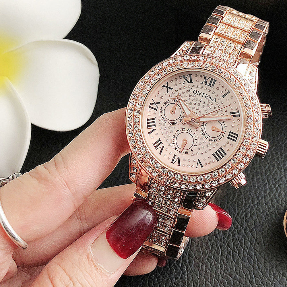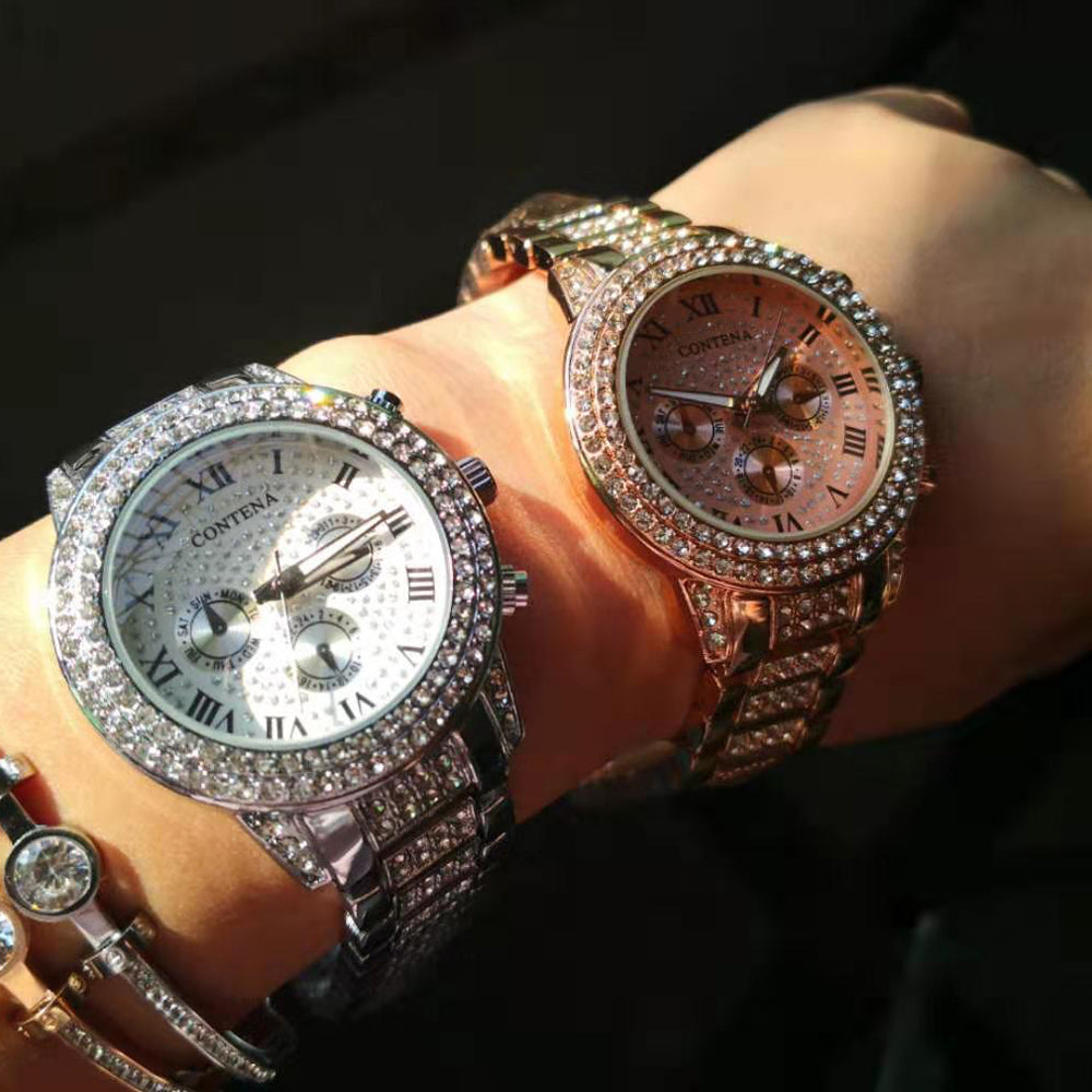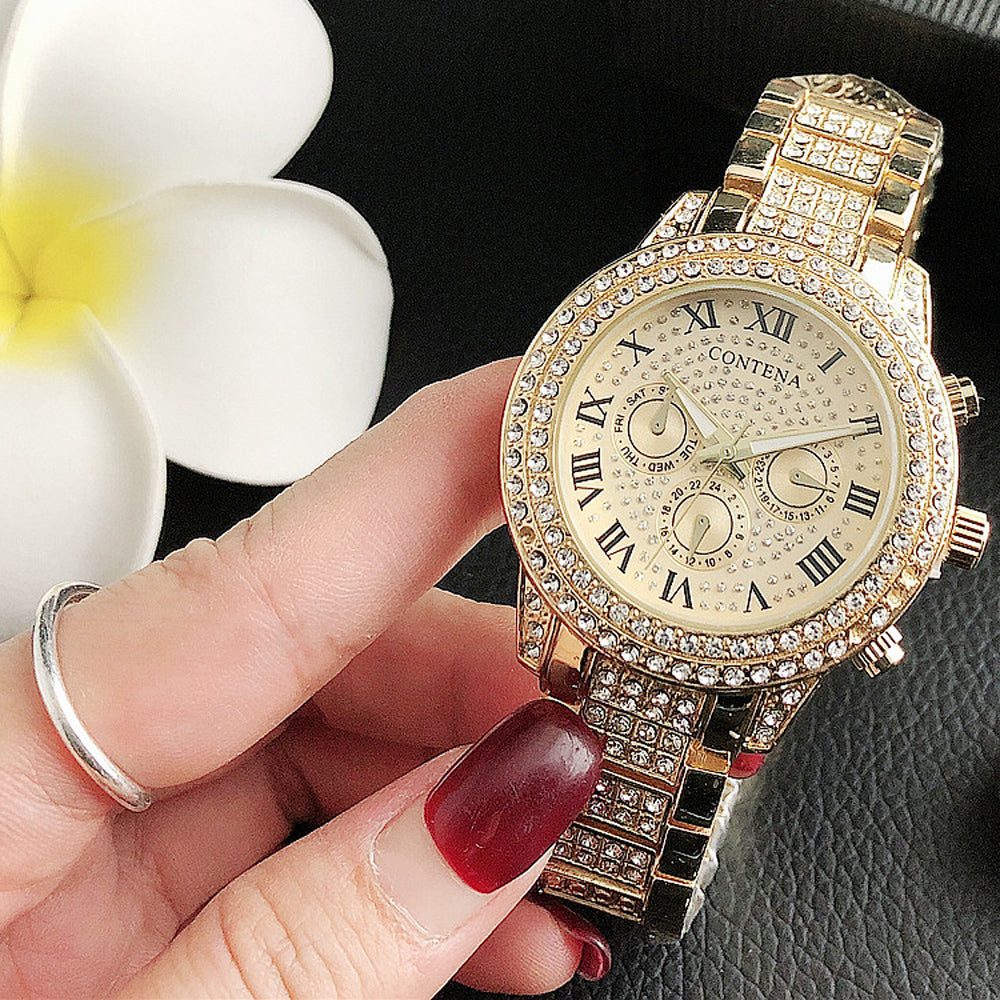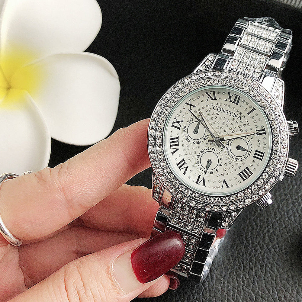 Women's Casual Fashion Folding Clasp with Safety Crystal Diamond Watches