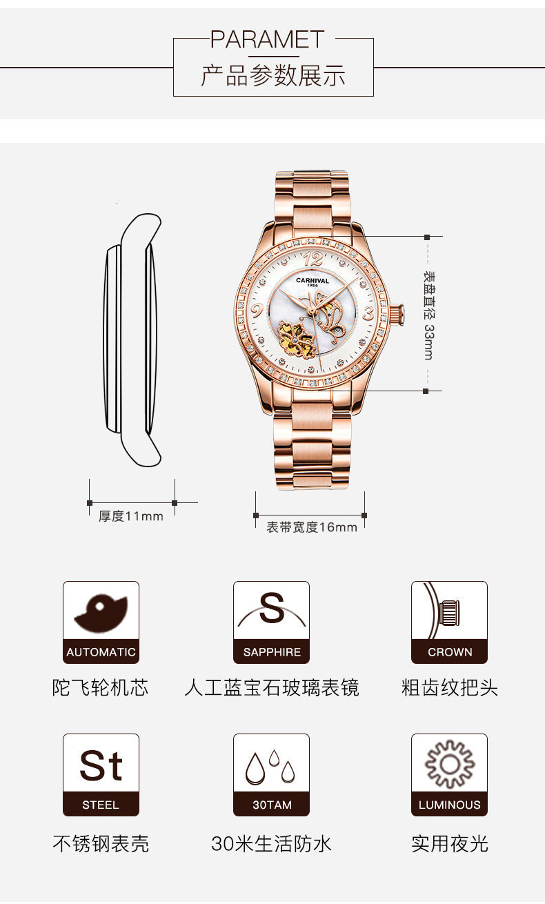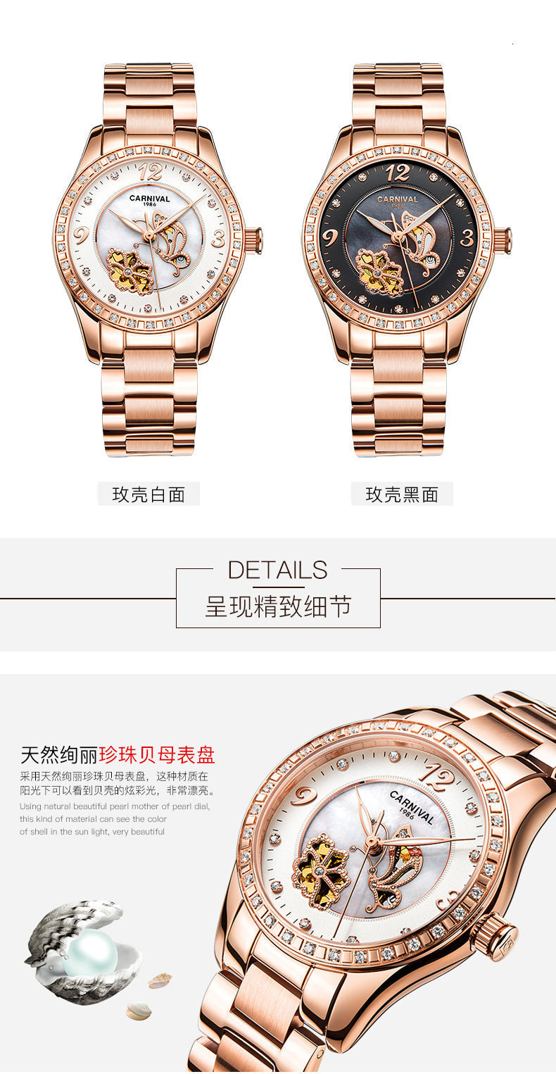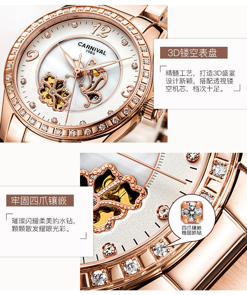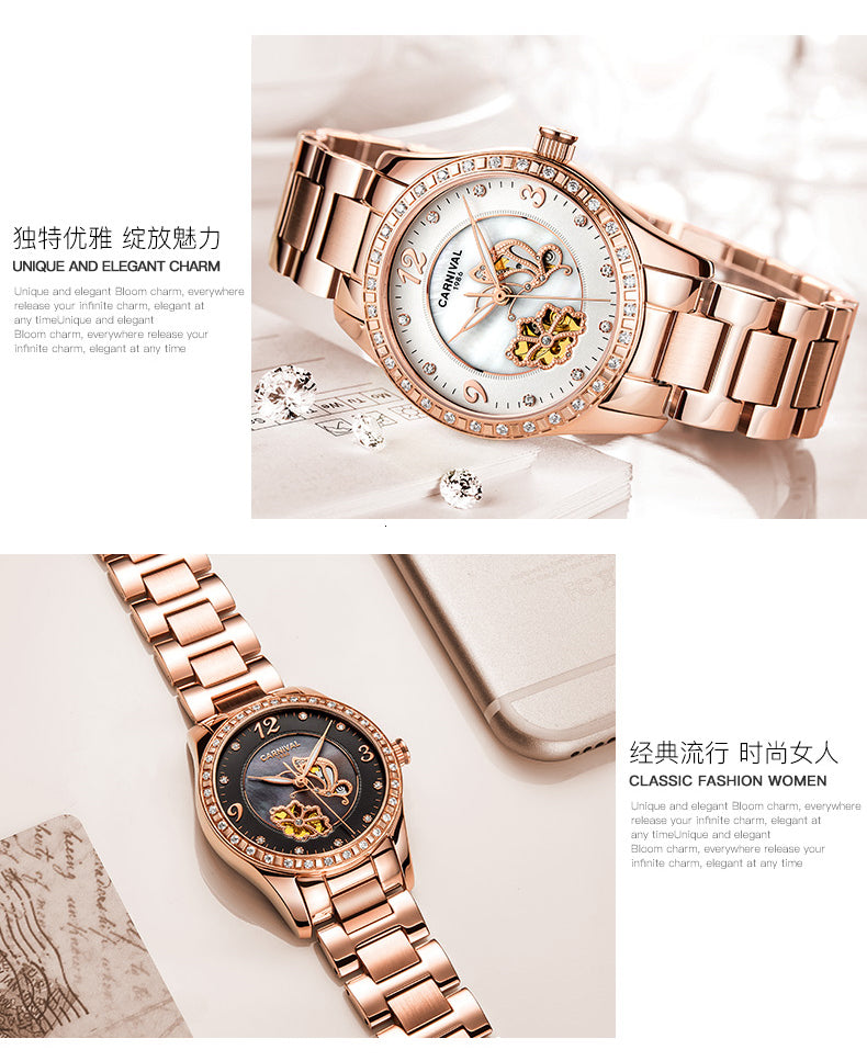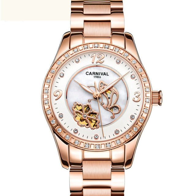 Women's Casual Luminous Automatic Skeleton Mechanical Wrist Watch