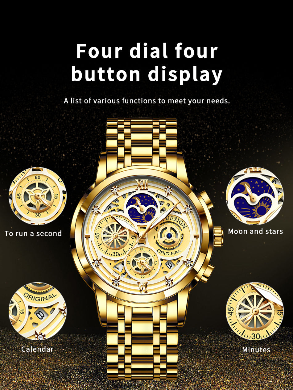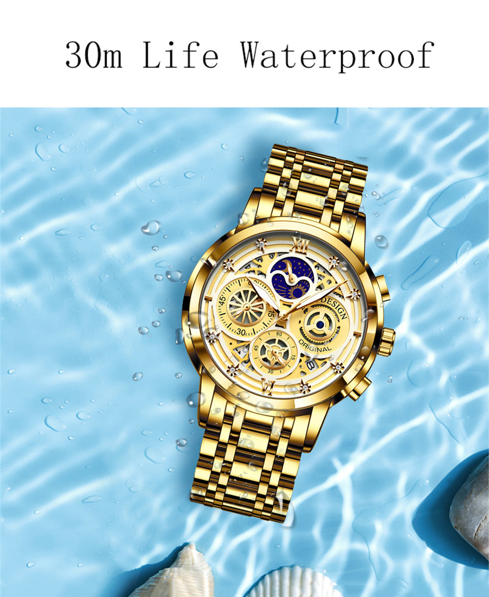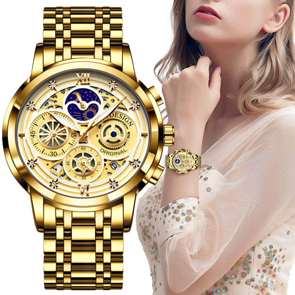 Women's Chronograph Creative Moon Phase Waterproof Wristwatch