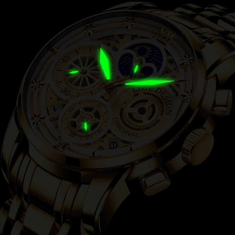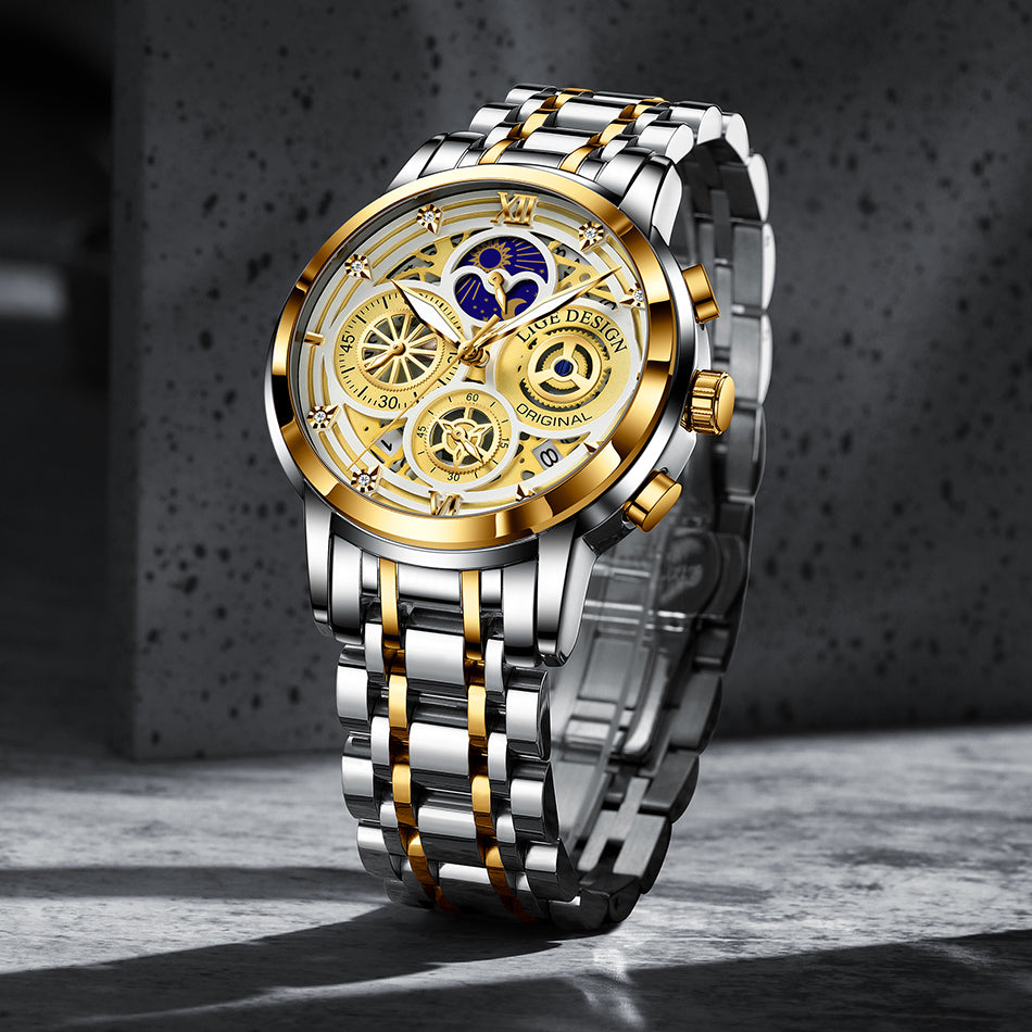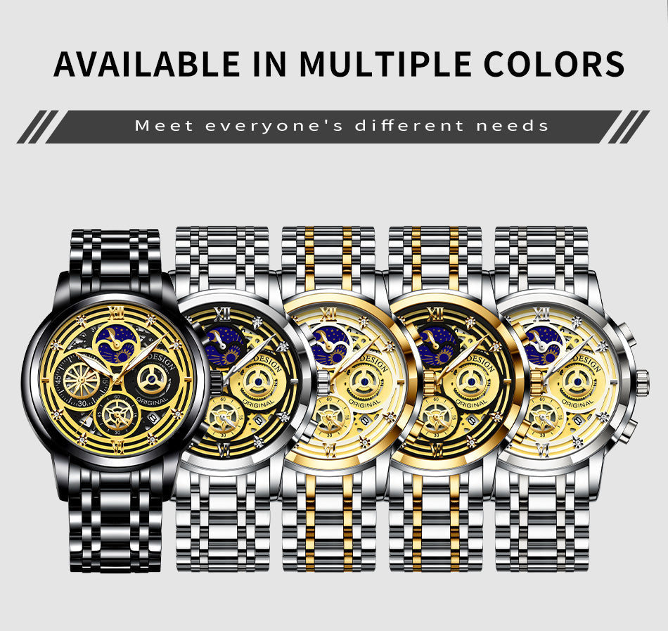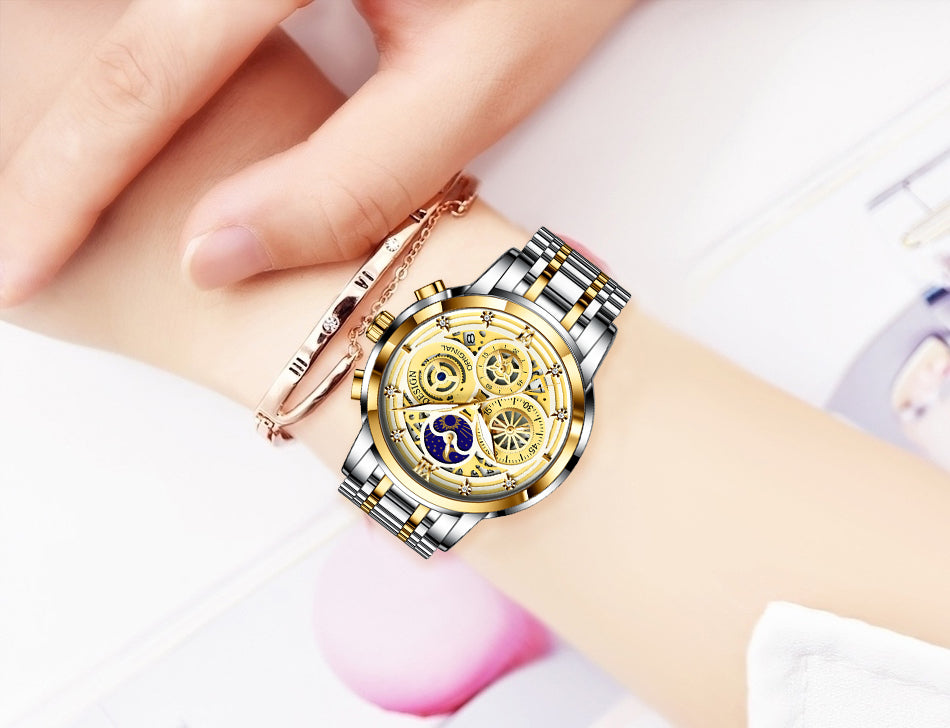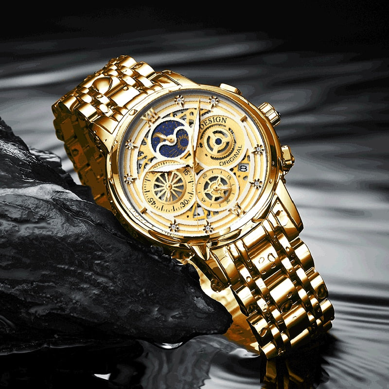 Women's Chronograph Creative Moon Phase Waterproof Wristwatch