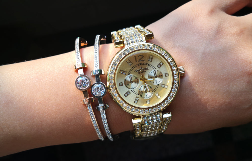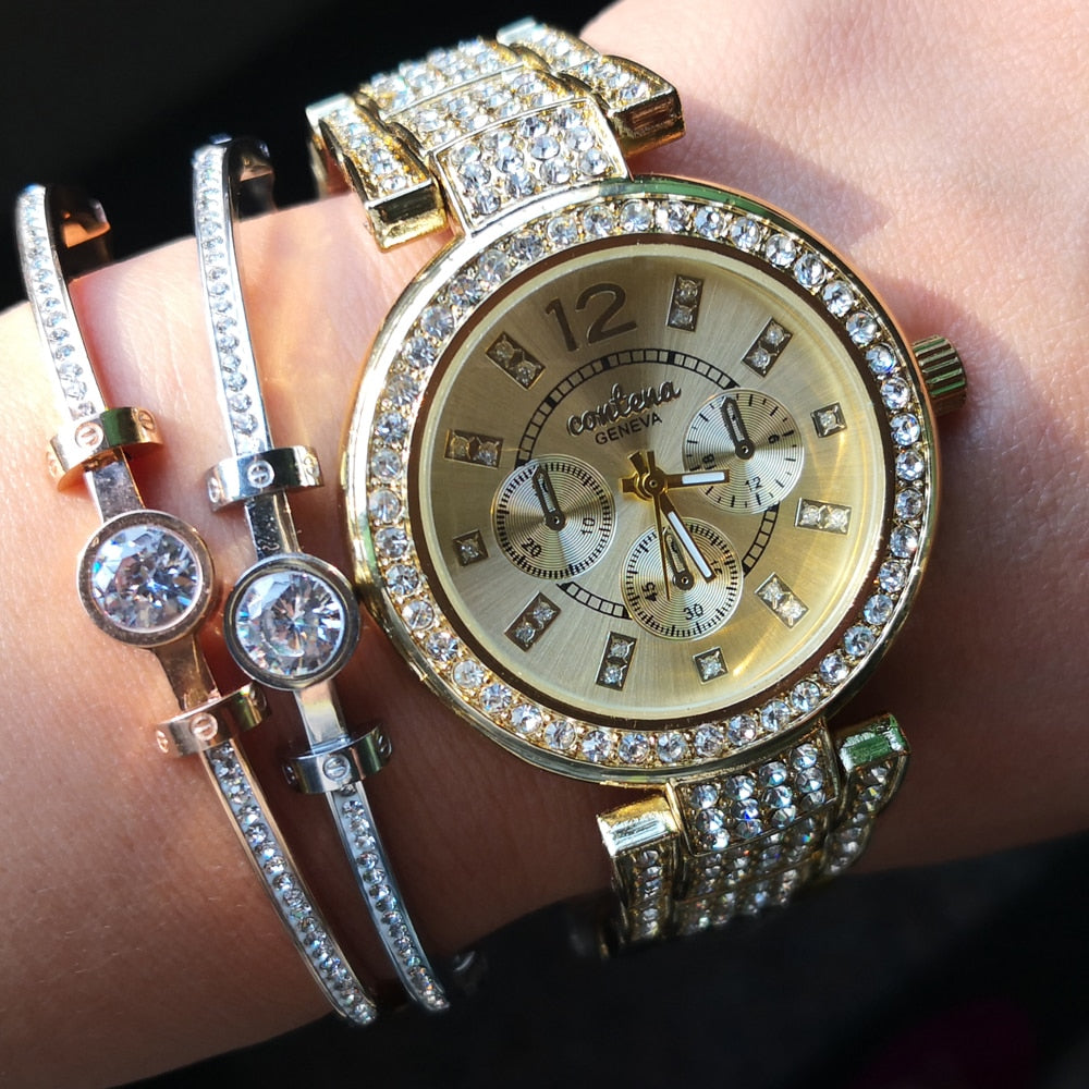 Women's Fashion Rhinestone Stainless Steel Quartz Wristwatches