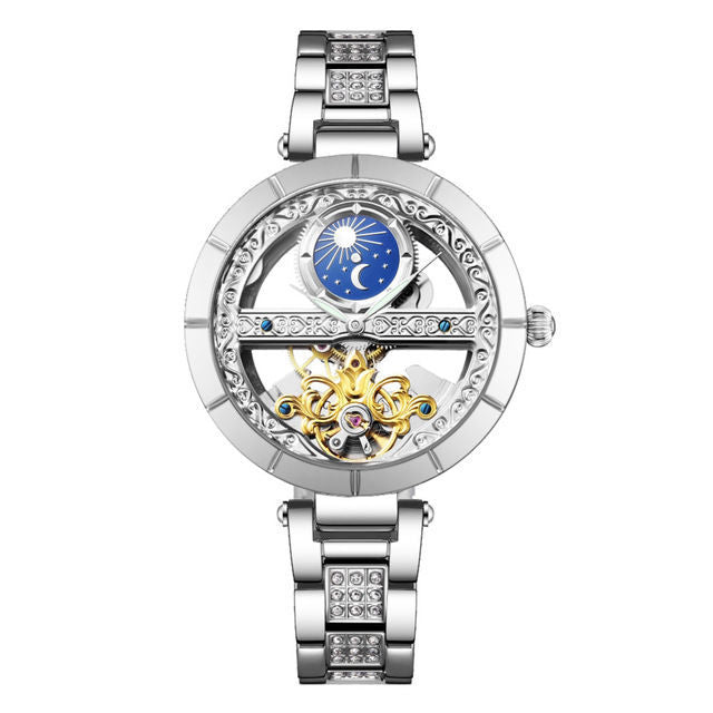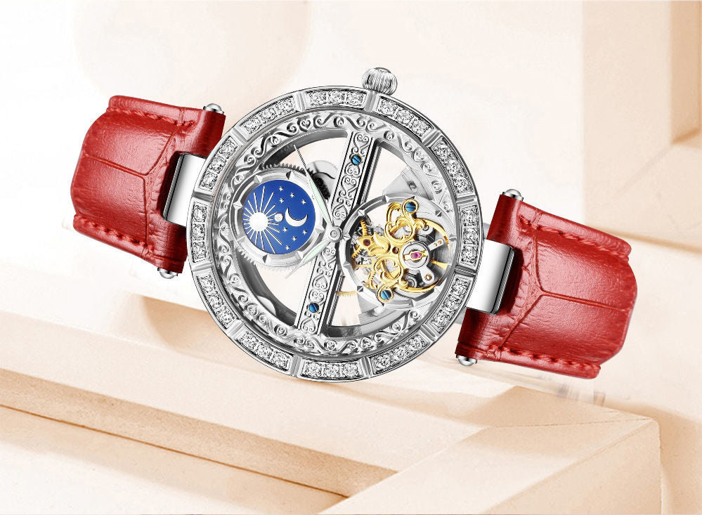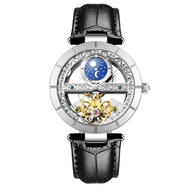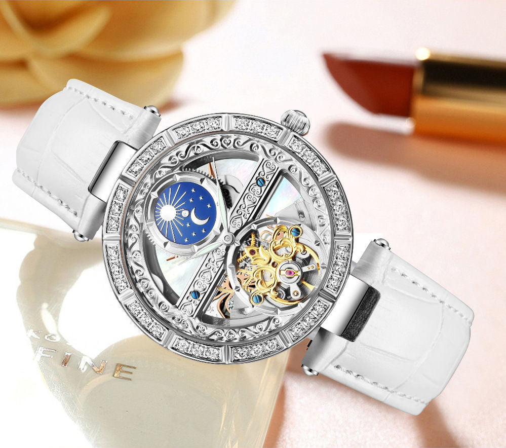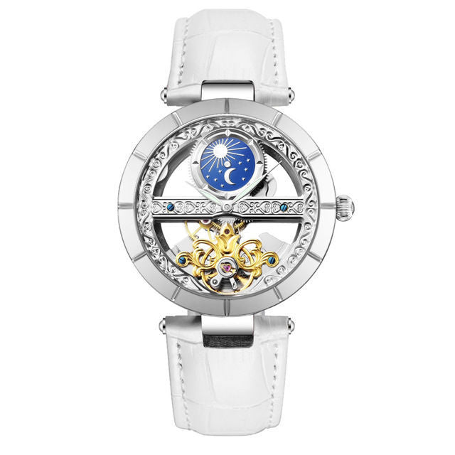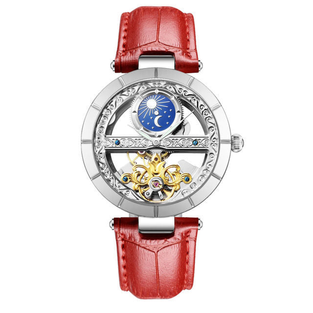 Women's Genuine Leather Hollowed Out Skeleton Luminous Wristwatch