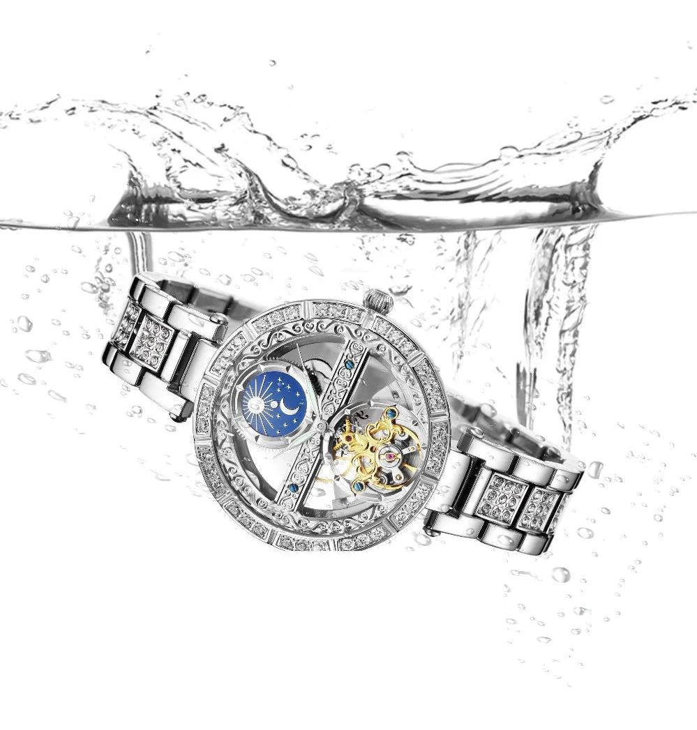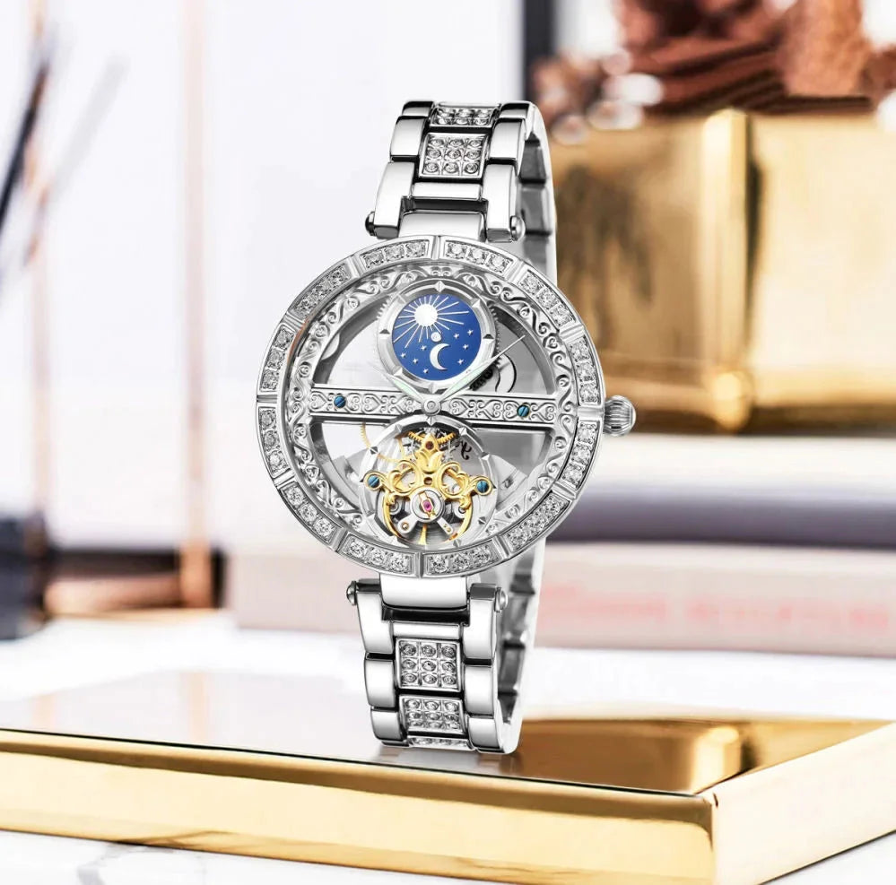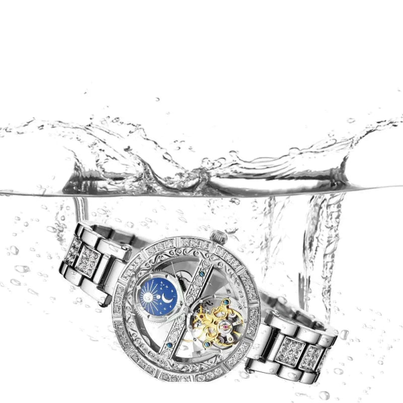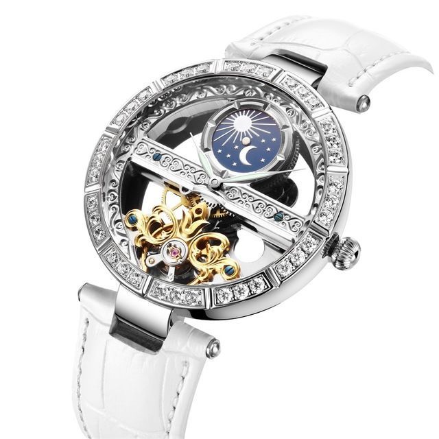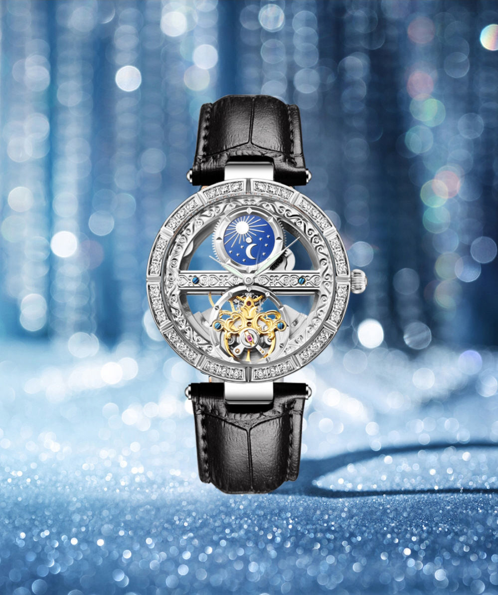 Women's Genuine Leather Hollowed Out Skeleton Luminous Wristwatch