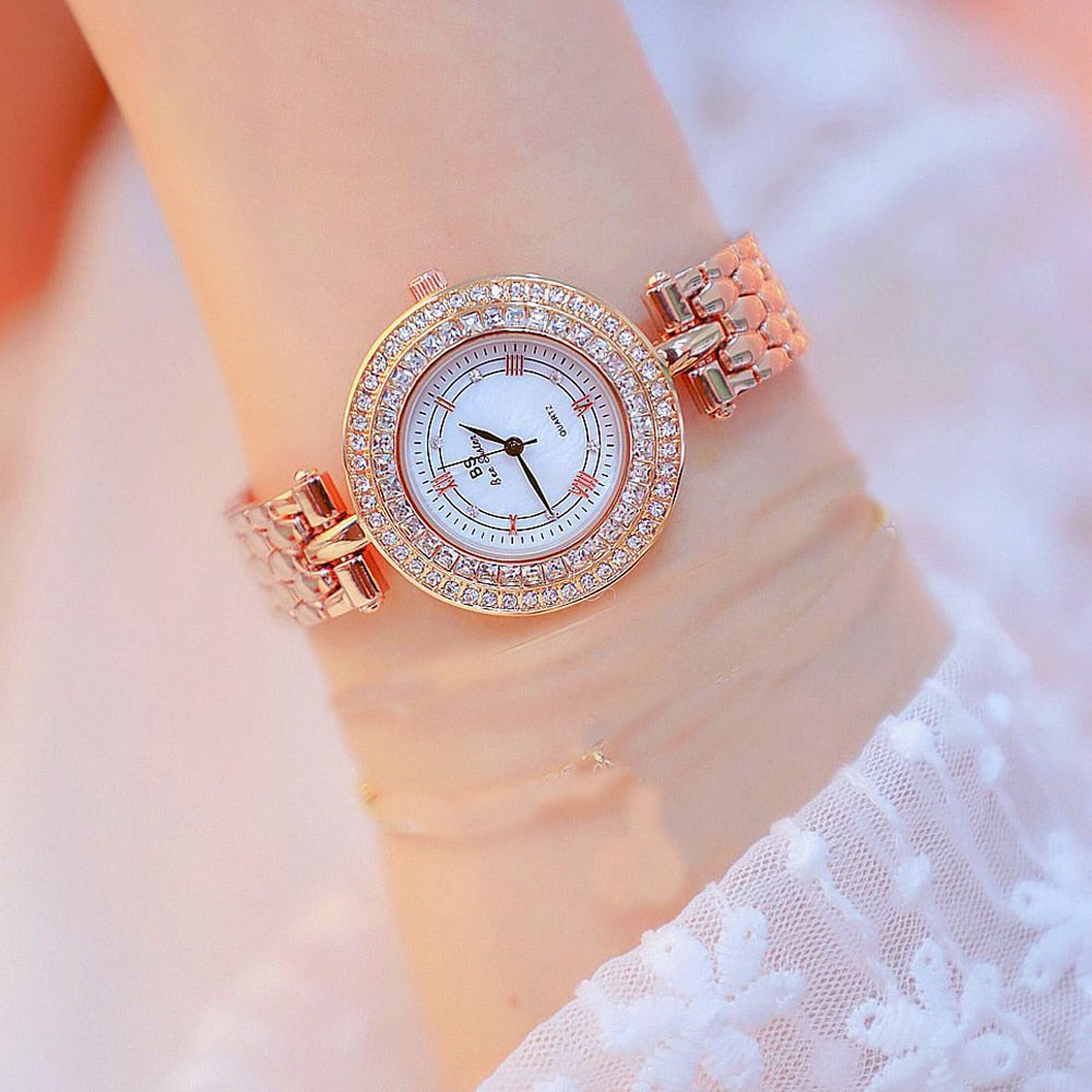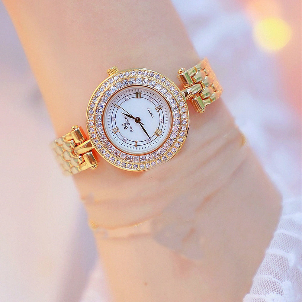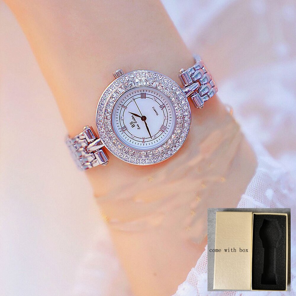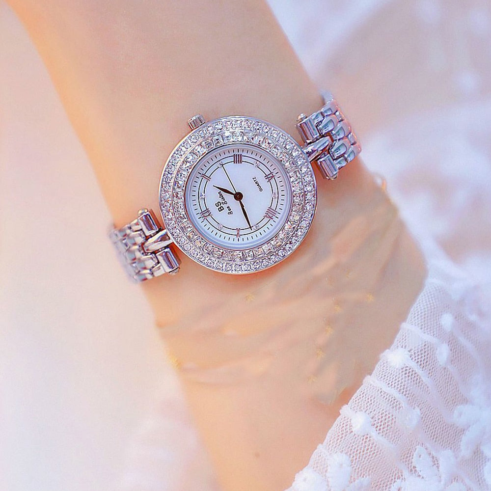 Women's Luxury Designer Golden Rose Silver Quartz Wristwatch