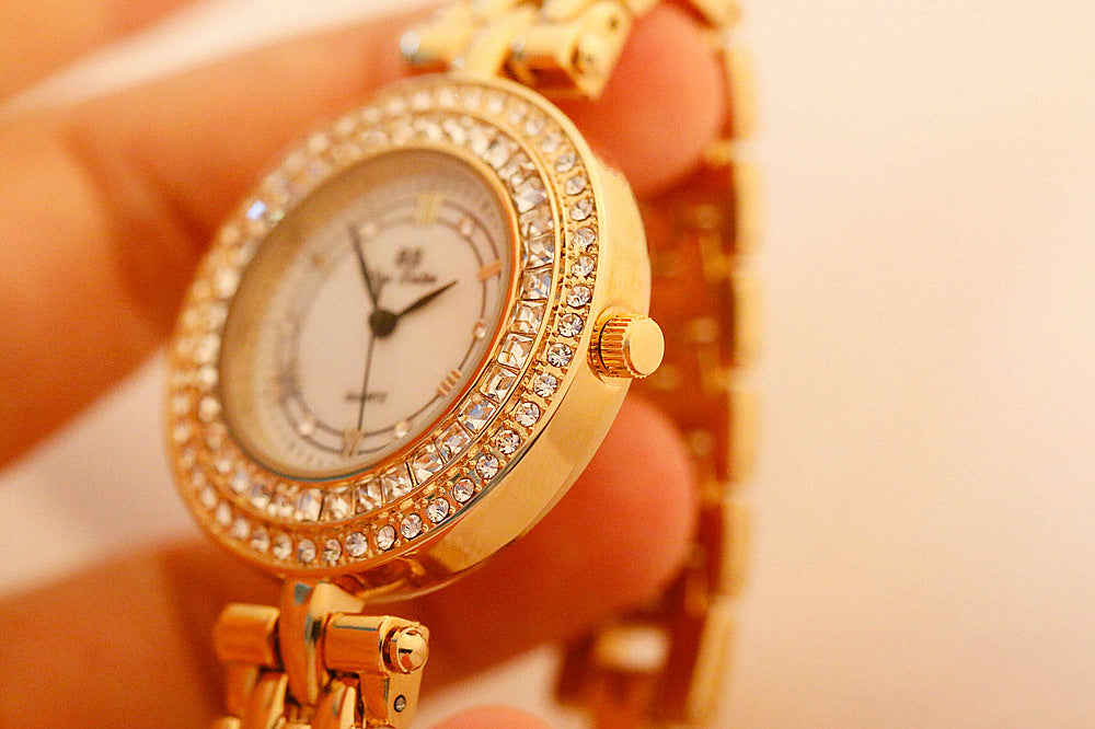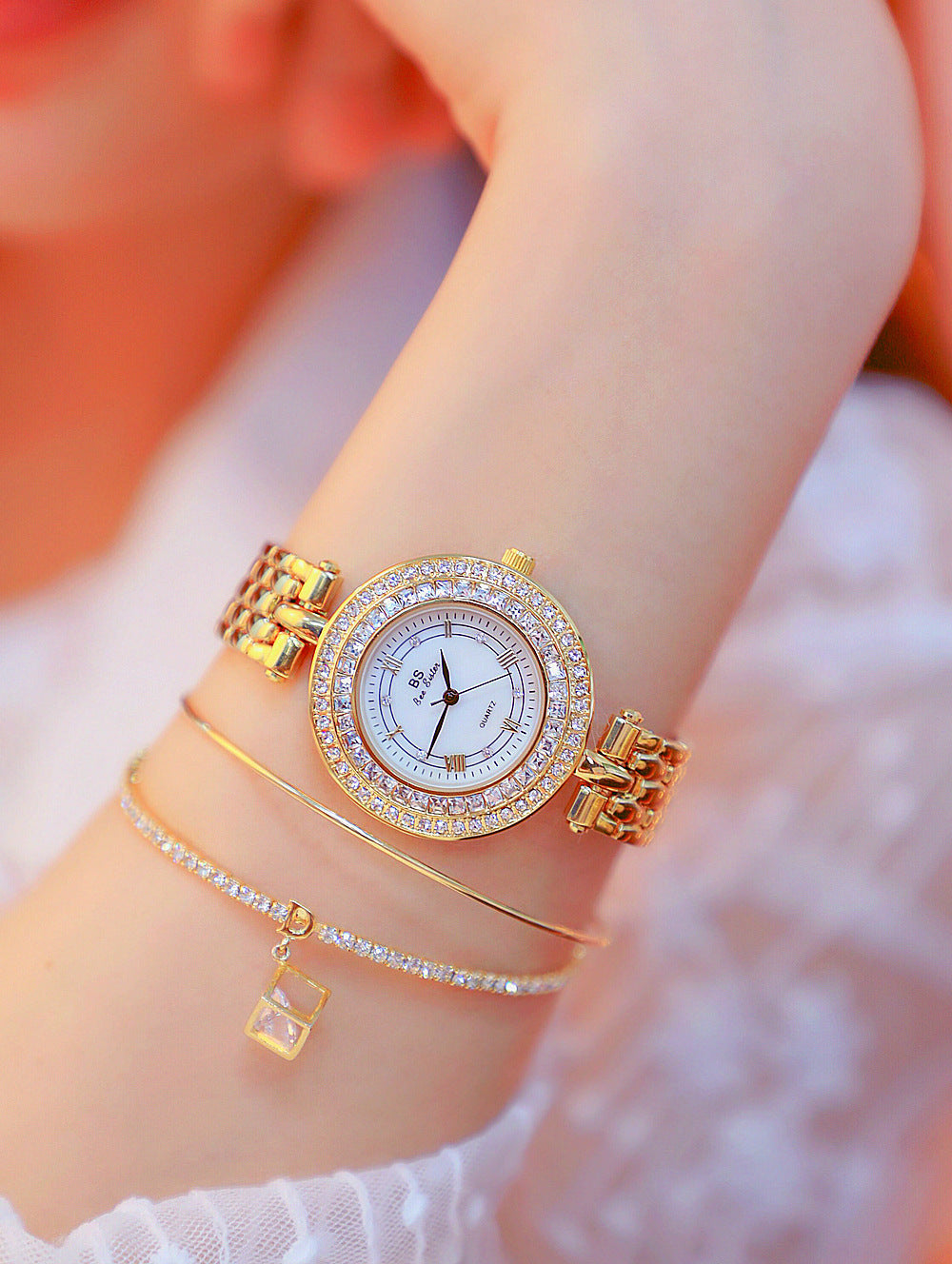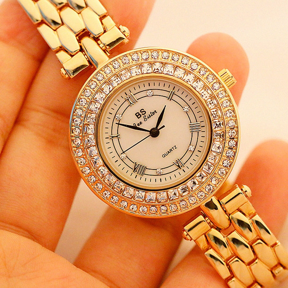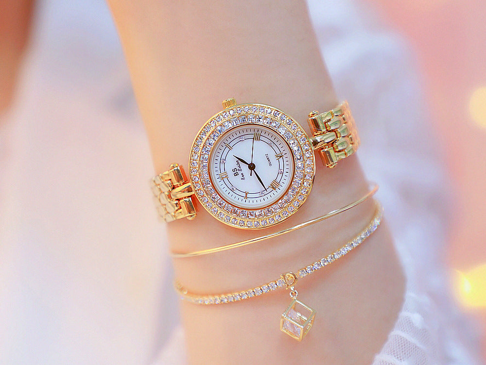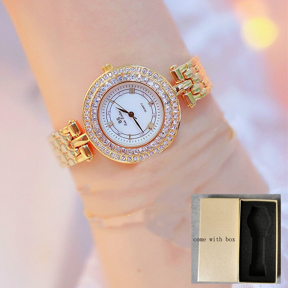 Women's Luxury Designer Golden Rose Silver Quartz Wristwatch