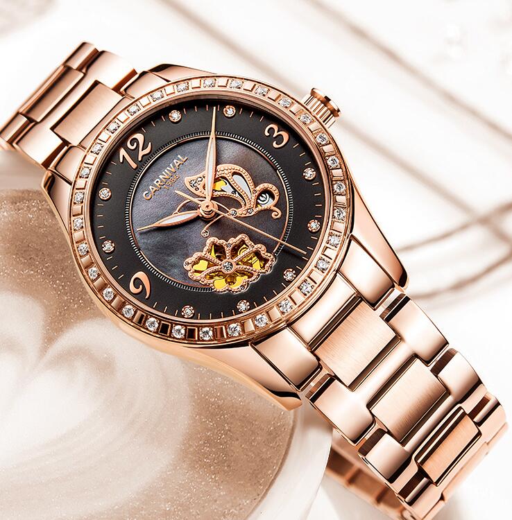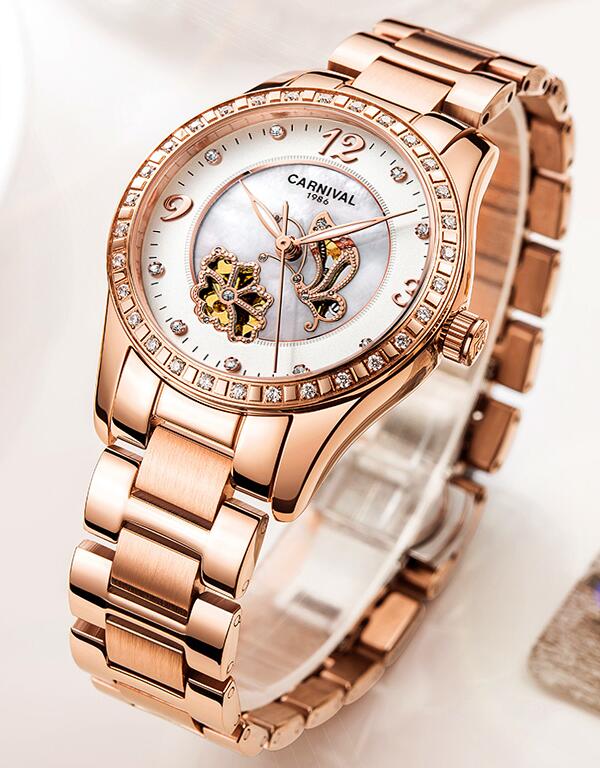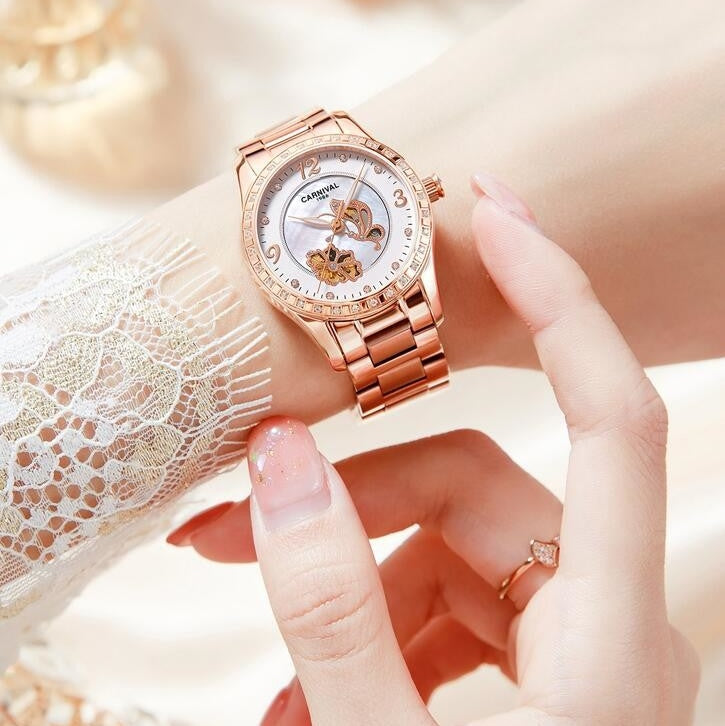 Women's Luxury Rhinestone Automatic Mechanical Date Wrist Watch