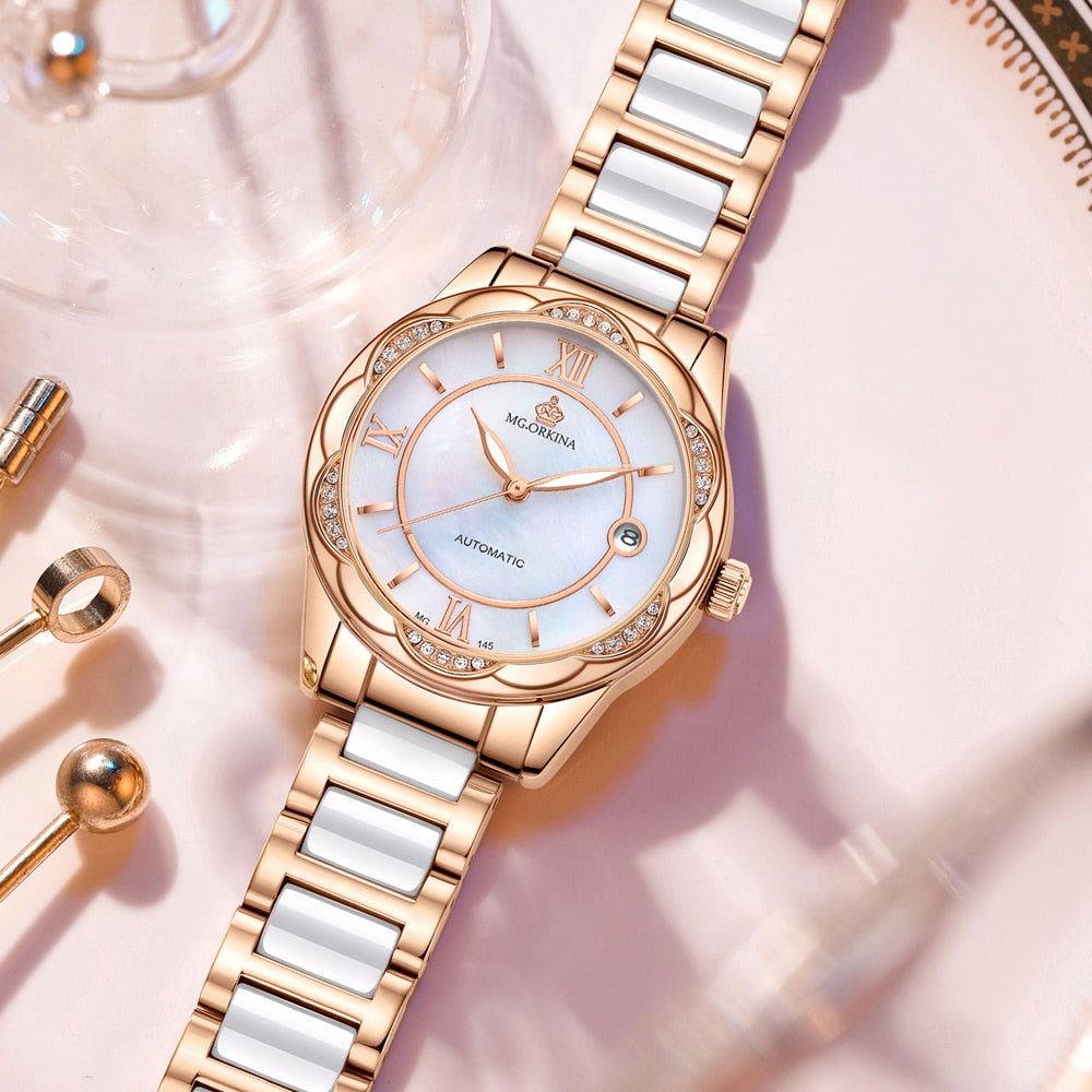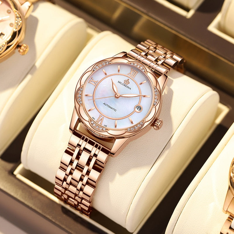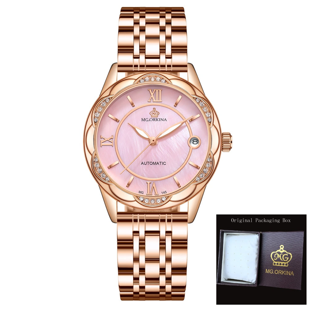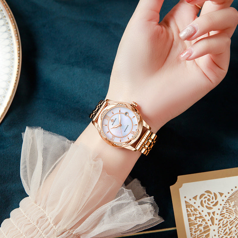 Women's Mechanical Stainless Steel Luminous Hands Bracelet Watch