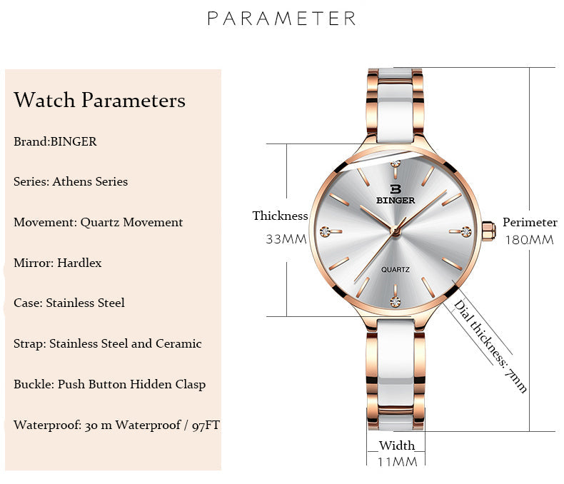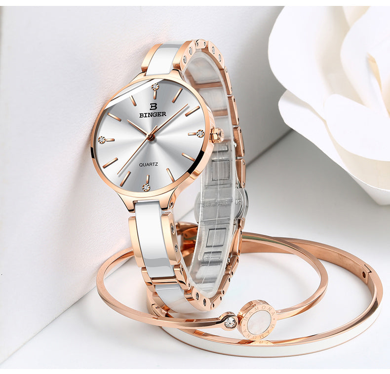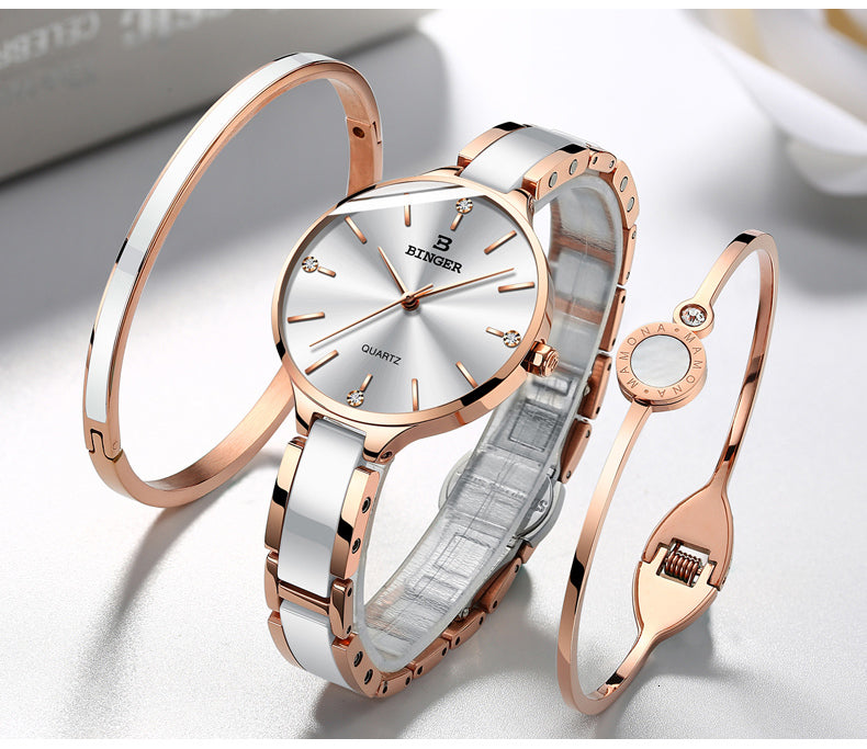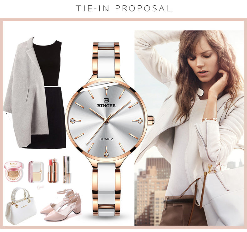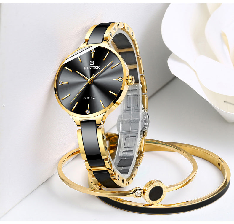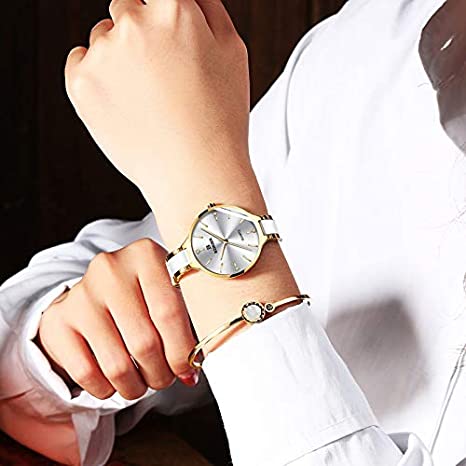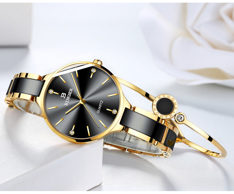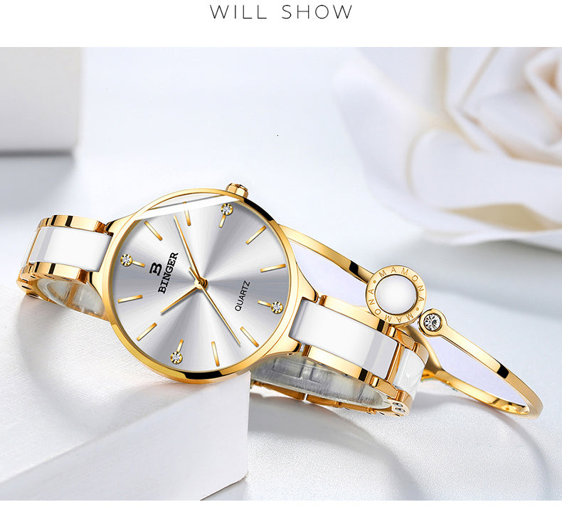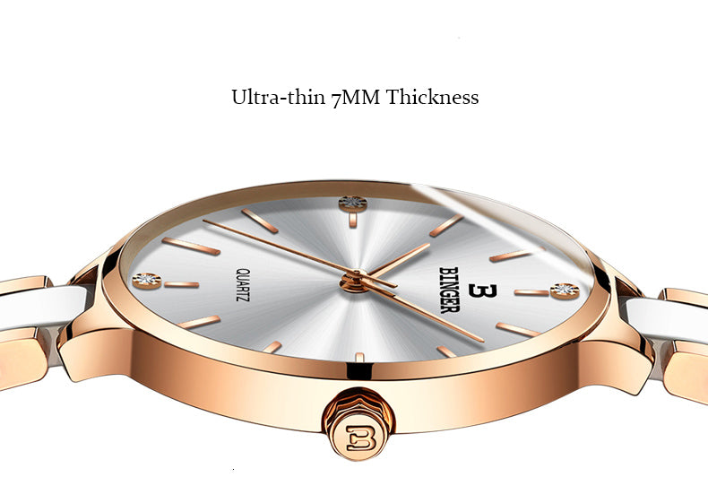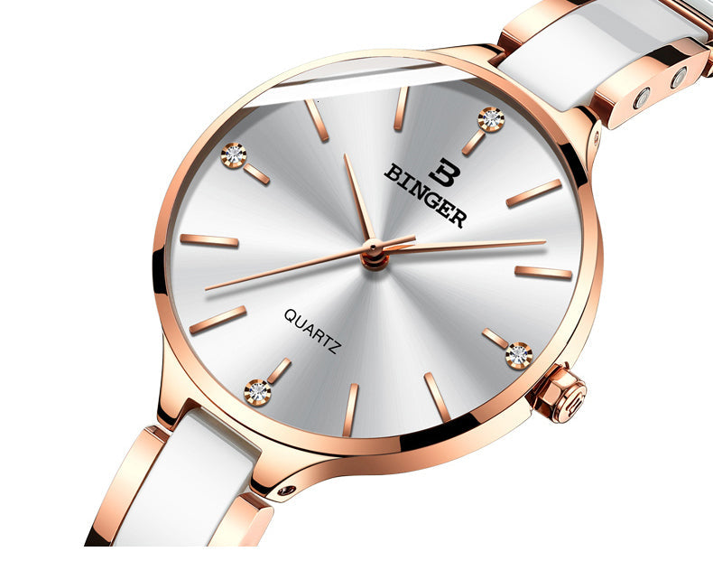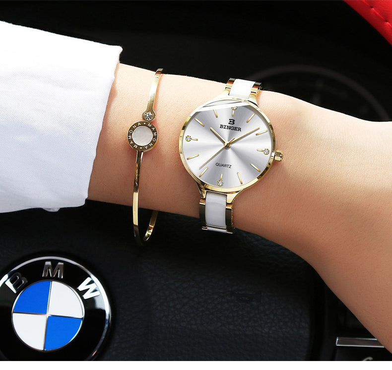 Women's Quartz Movement Ceramic Band Water Resistant Wrist Watch