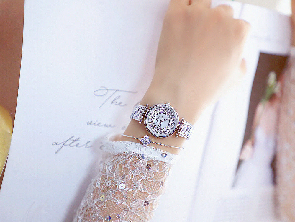 Women's Rhinestone Round Shape Stainless Steel Shock Resistant Watch