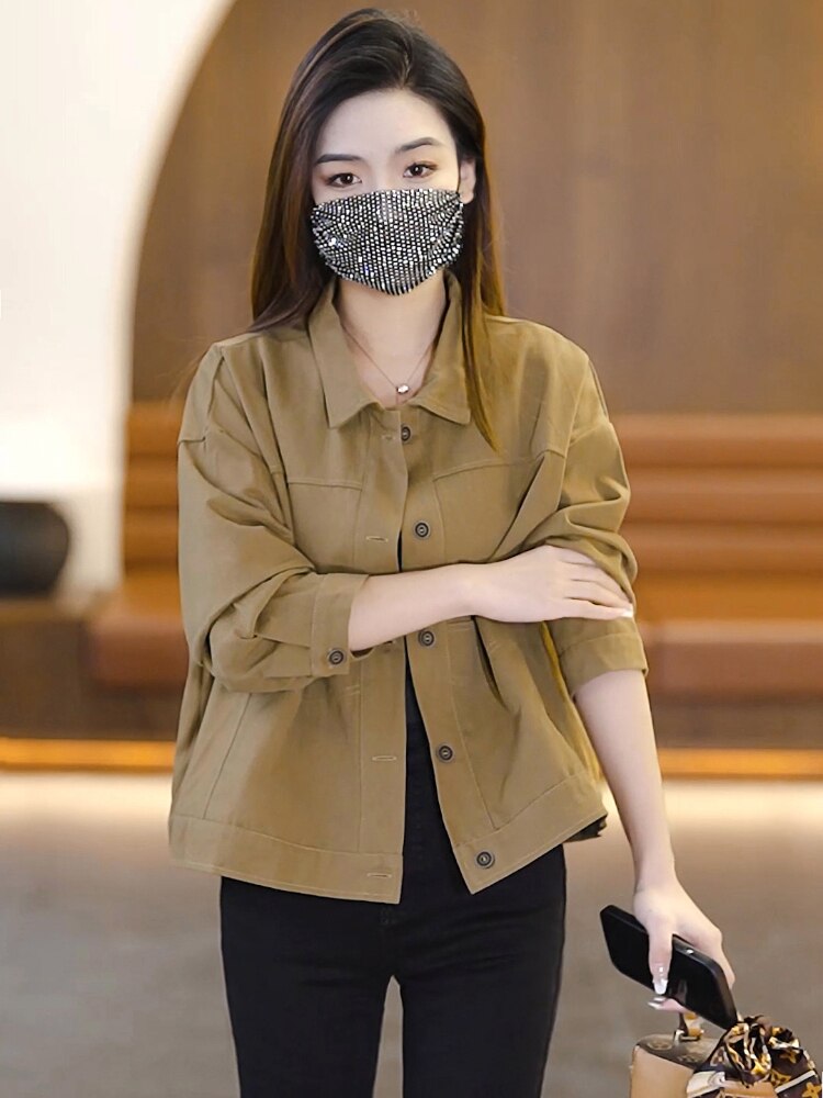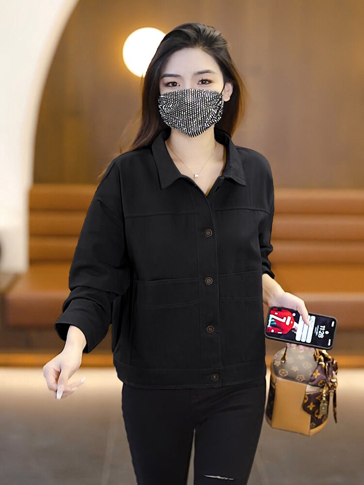 Women Short Coat 2023 Spring Autumn New Fashion Casual Jacket Women's Versatile Workwear Polo Neck Cardigan Baseball Jersey Top