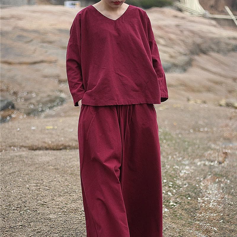 For easy elegance, slip on the Zen OOTD Two Piece Set. Crafted from a soft linen-cotton material, the relaxed set features long sleeves, v-neckline, elastic waist, and a flattering ankle length. Pair with ankle boots for a contemporary approach to everyday style.